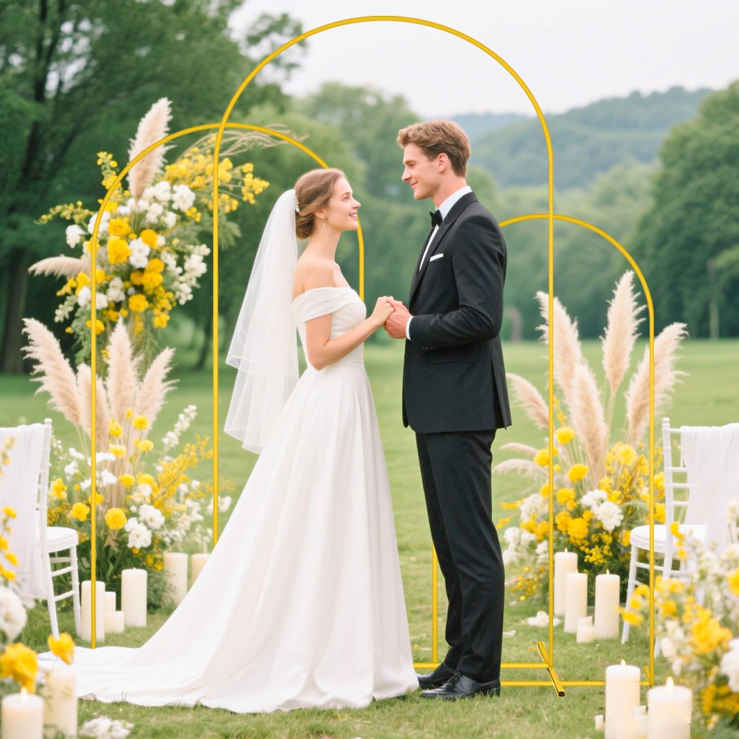 - ⭐Easy to Install - Arch Backdrop Stand: Each arch is cut into short sections, wedding arch stand can be easily assembled with wing screws in minutes and reuse for next event. Matching flower, arch cover and cylinder stand, backdrop arch stand create a truly stunning looking for your event.