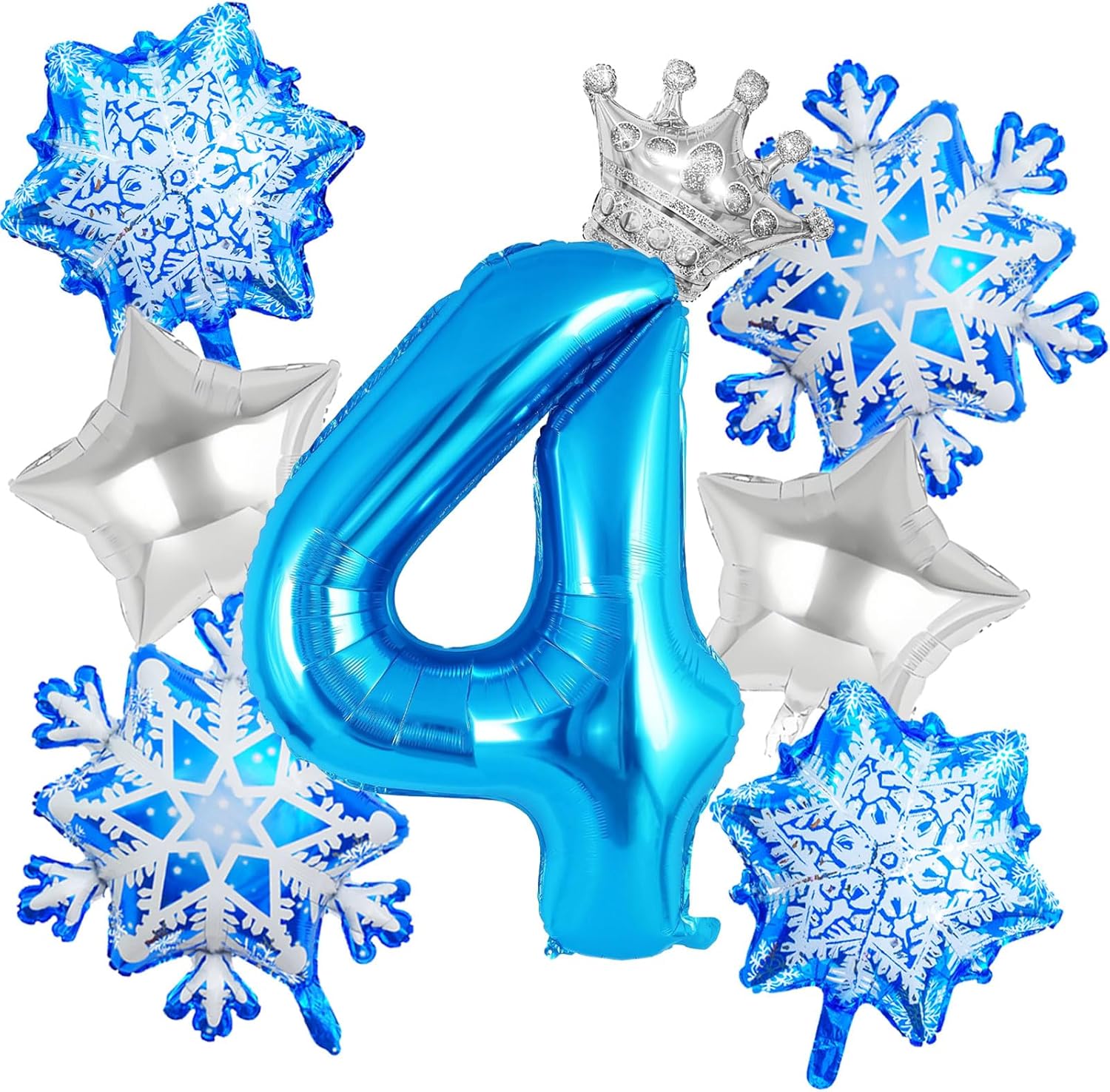 8Pcs Winter Wonderland Decorations - 40inch Blue Number 4 Balloons - Crown Balloons for Winter Wonderland Party Decorations - Birthday Decoration