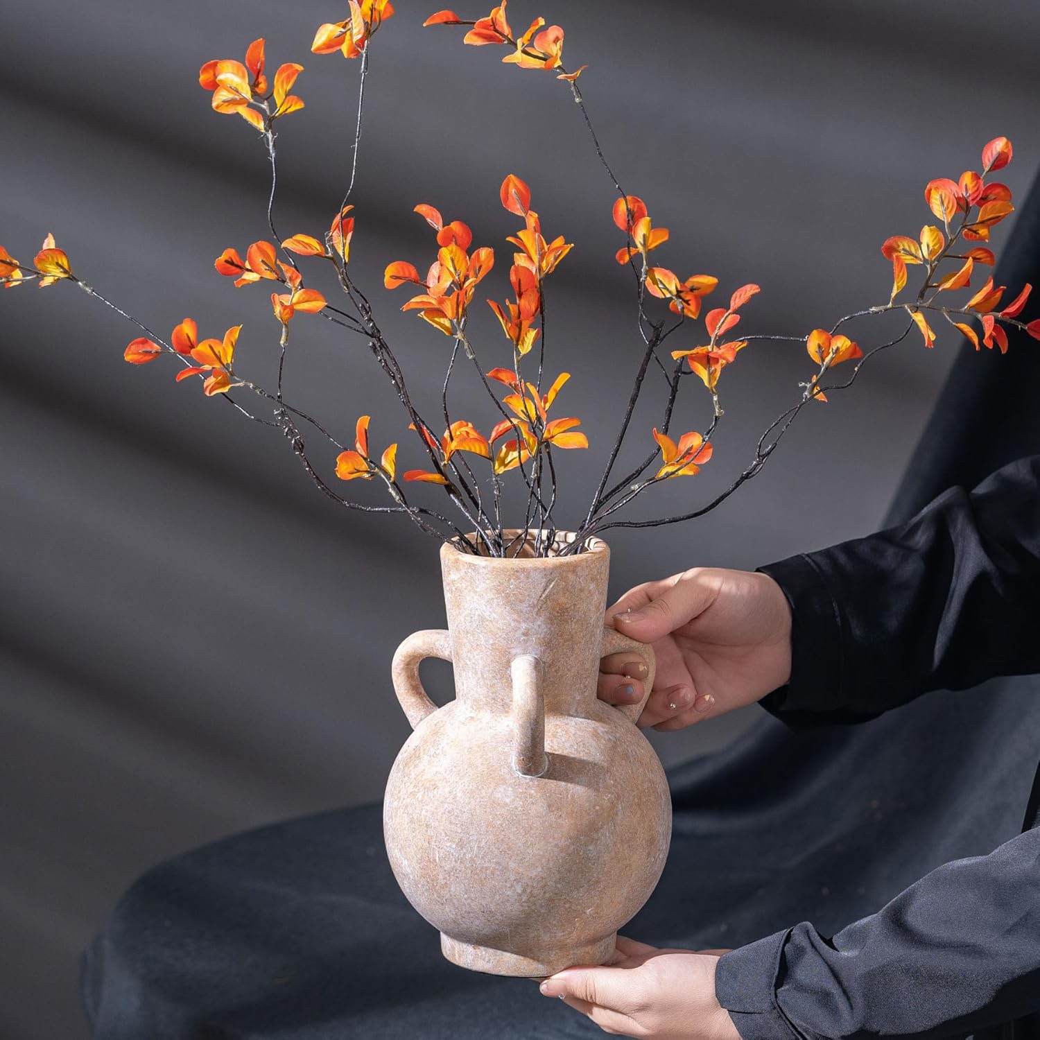 Beige Vintage Terracotta Ceramic Vase with Handles, Rustic Pottery Tulip Vase for Cottage Core Home Mantle Decor, Large Bulk Flower Vases Farmhouse Table Centerpieces, Jarrones Decorativos para Sala