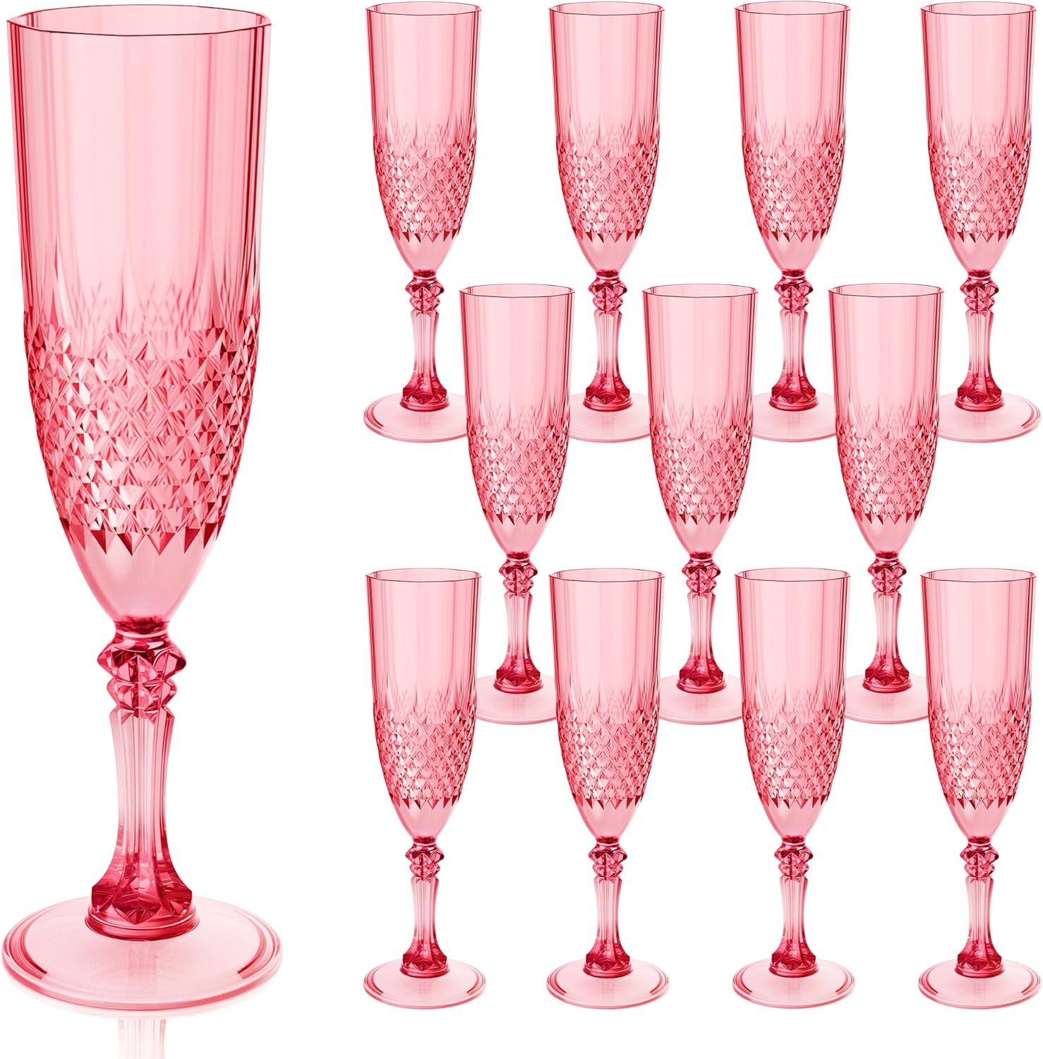 - Charming Set: Champagne flutes set include 12 retro-style red champagne plastic wine glasses, providing ample quantity to meet your daily use and replacement needs. A suitable champagne cup is the icing on the cake. Plastic wine glasses not only carry the wine, but also carries the laughter and blessings