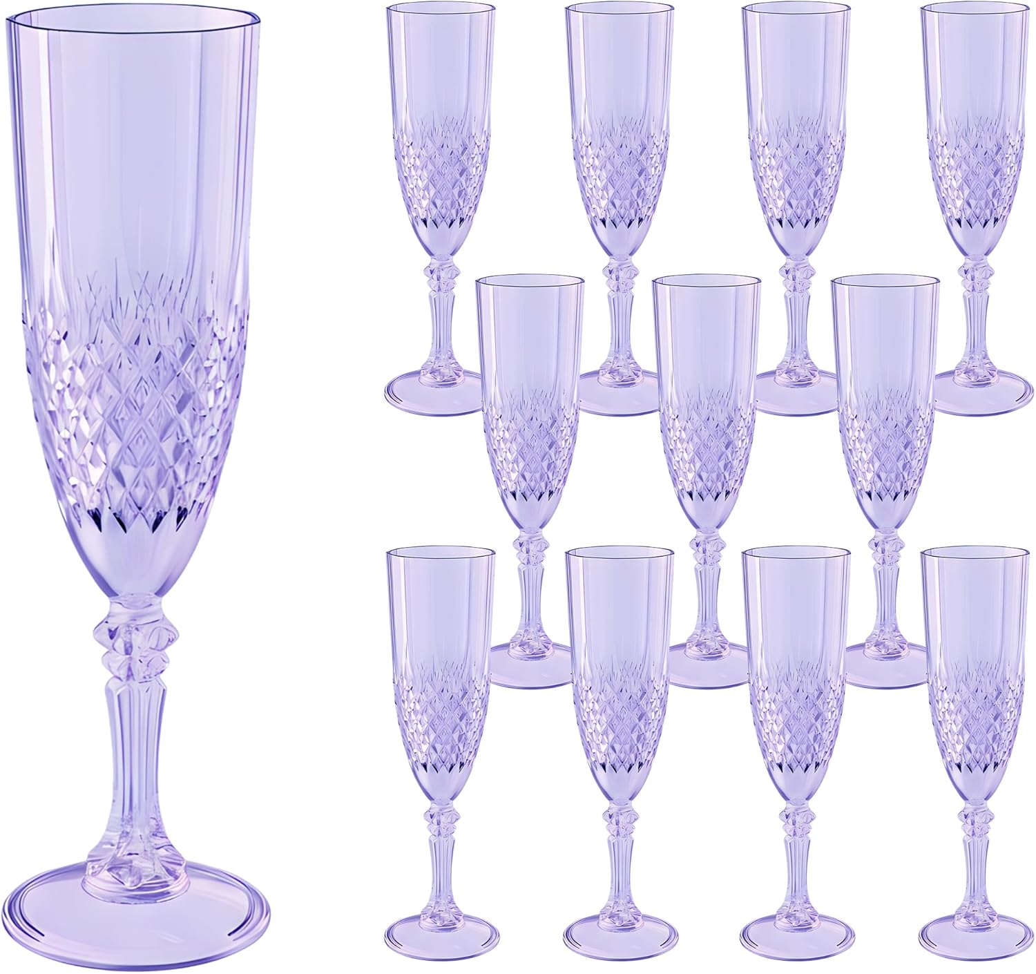 - Charming Set: Champagne flutes set include 12 retro-style light purple champagne plastic wine glasses, providing ample quantity to meet your daily use and replacement needs. A suitable champagne cup is the icing on the cake. Plastic wine glasses not only carry the wine, but also carries the laughter and blessings