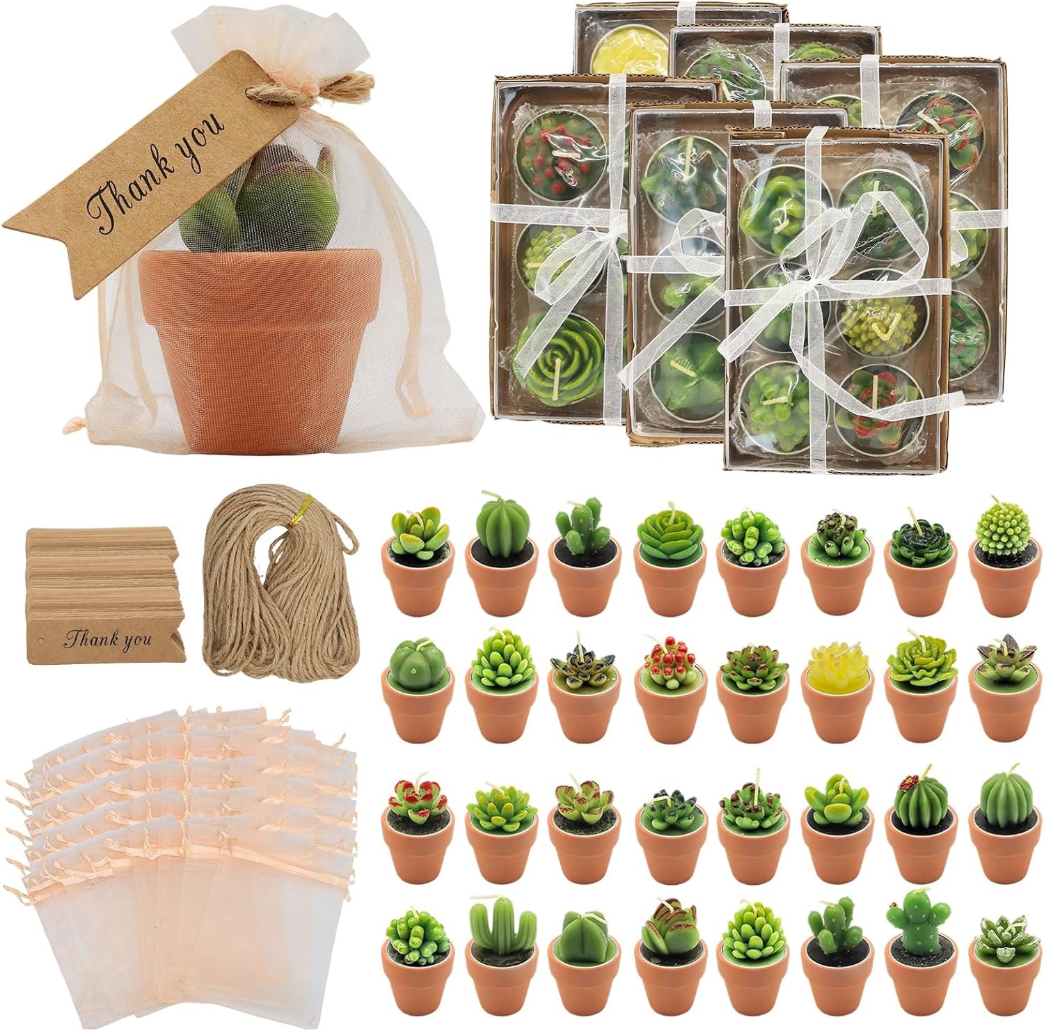 AZEAM 36 Pcs Succulent Candles Party Favors, Bulk Cactus Table Decor with Mini Terracotta Holders, Tiny Handmade Plant Tealights Candle Decoration for Baby Shower Bridal Game Wedding Home Birthday