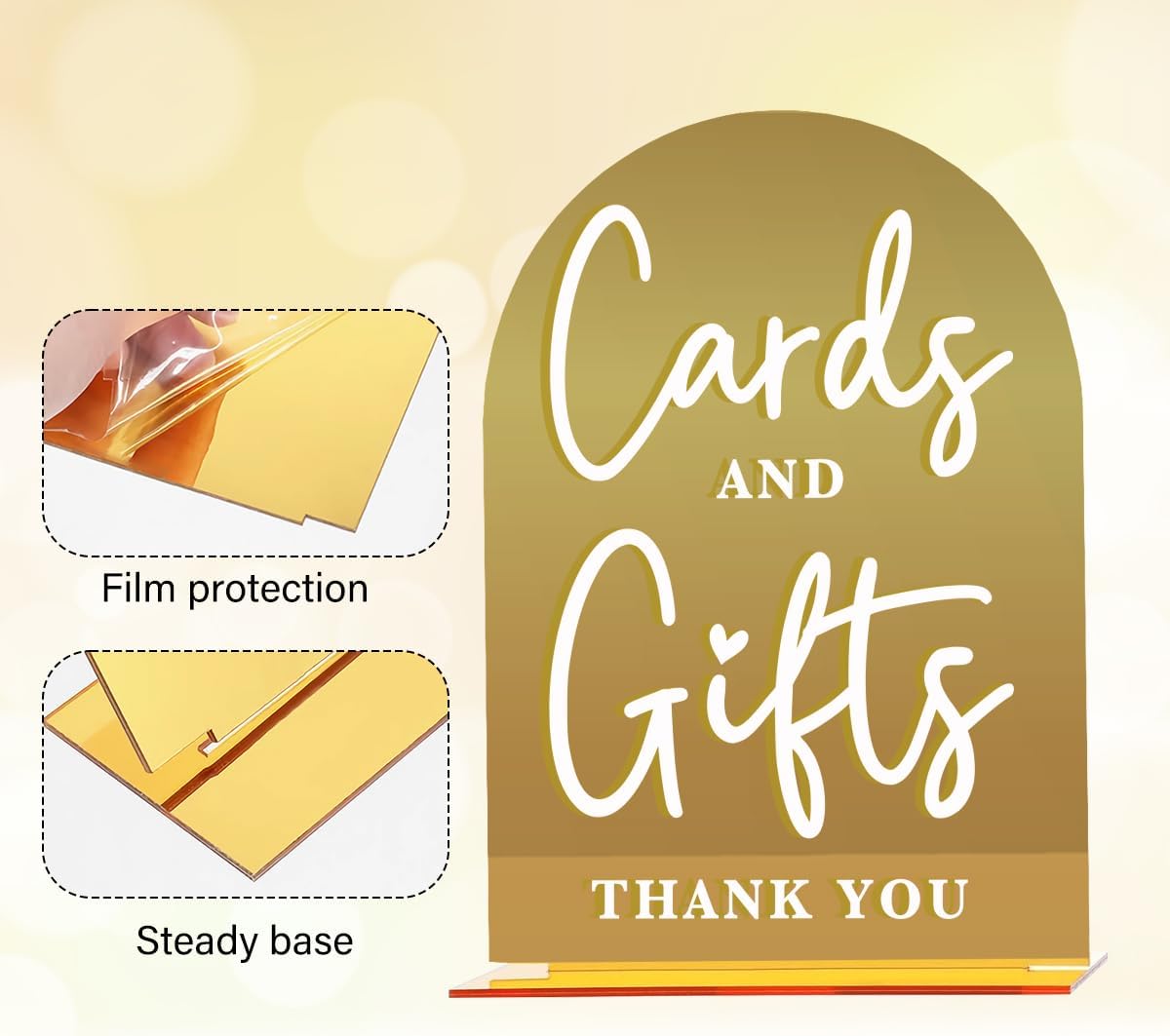 - 【Suitable Size】: Each wedding sign comes with a small acrylic base; the sign measures about 5 x 7 inches, and the acrylic base is about 4.3 x 1.2 inches. Each mirrored arch acrylic wedding sign has a protective film to prevent scratches, which should be torn off when ready to use.