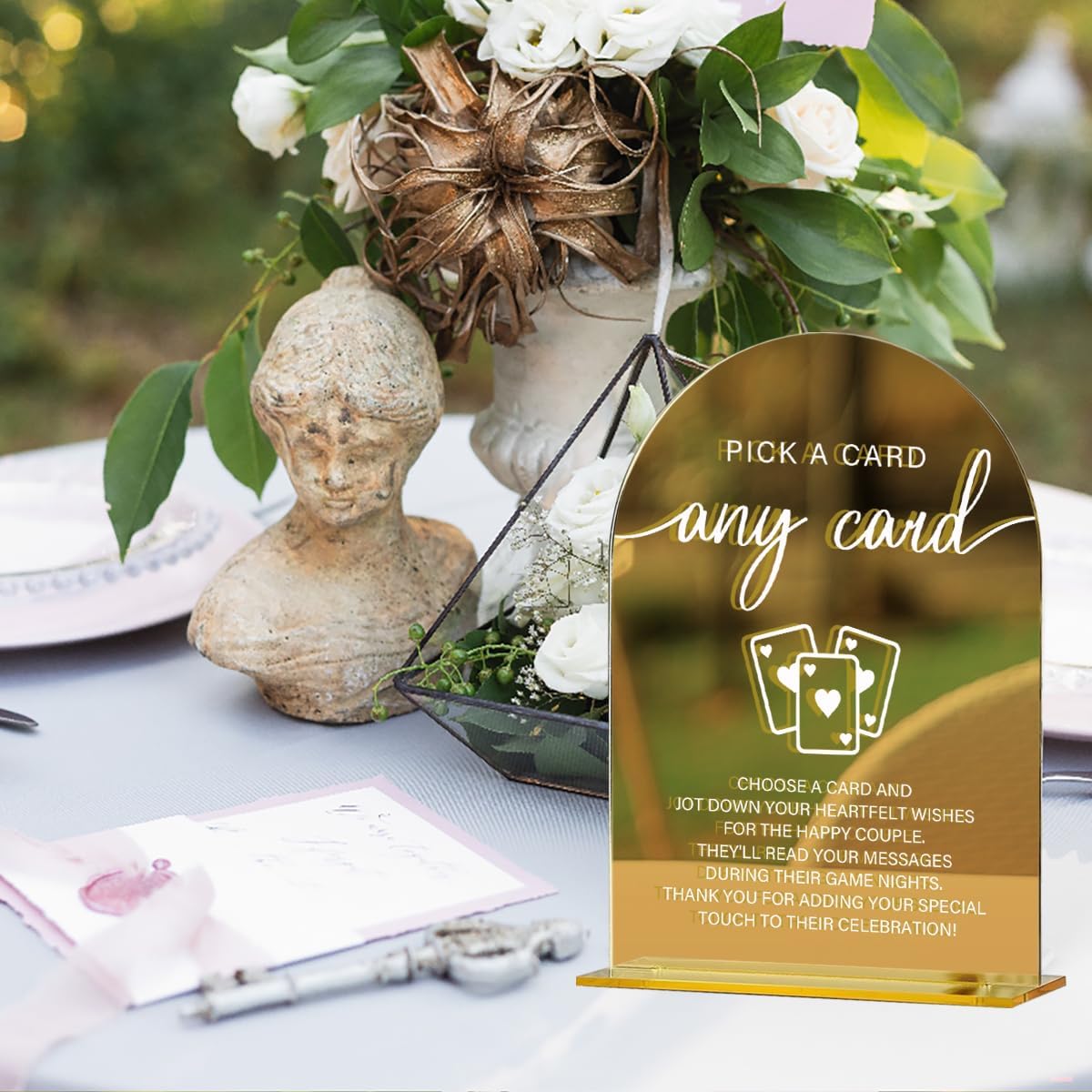 Acrylic Wedding Sign, Bridal Shower Decorations, Pick A Card Sign for Ceremony, Modern Font Table Signs, Gold Mirror Arched Acrylic Tabletop Signs for Wedding Reception and Event Party