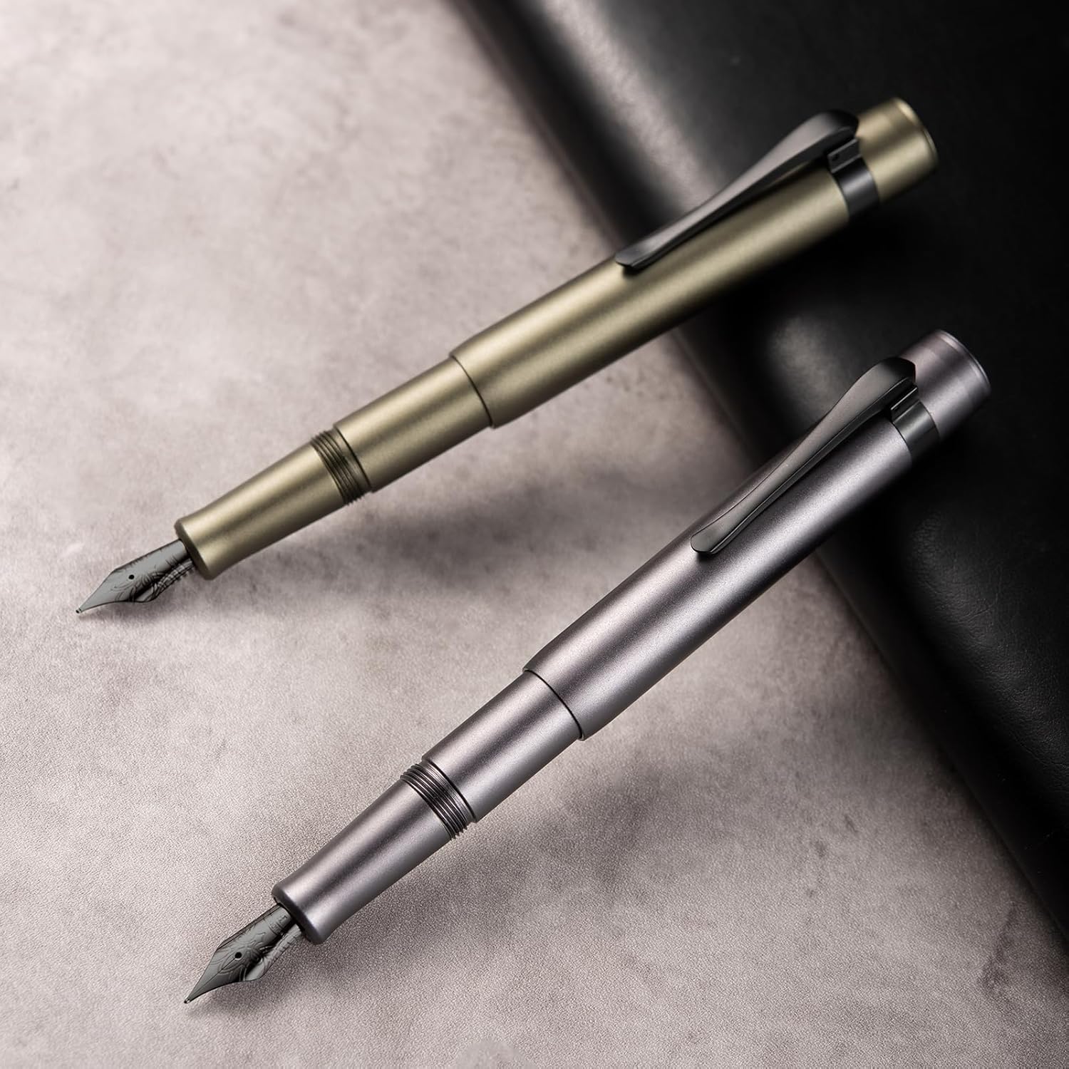 Hongdian M2 Black Forest Mini Fountain Pen, Bent Nib & Sleek Shape Aluminium Short Pocket Travel Pen (Space Gray)