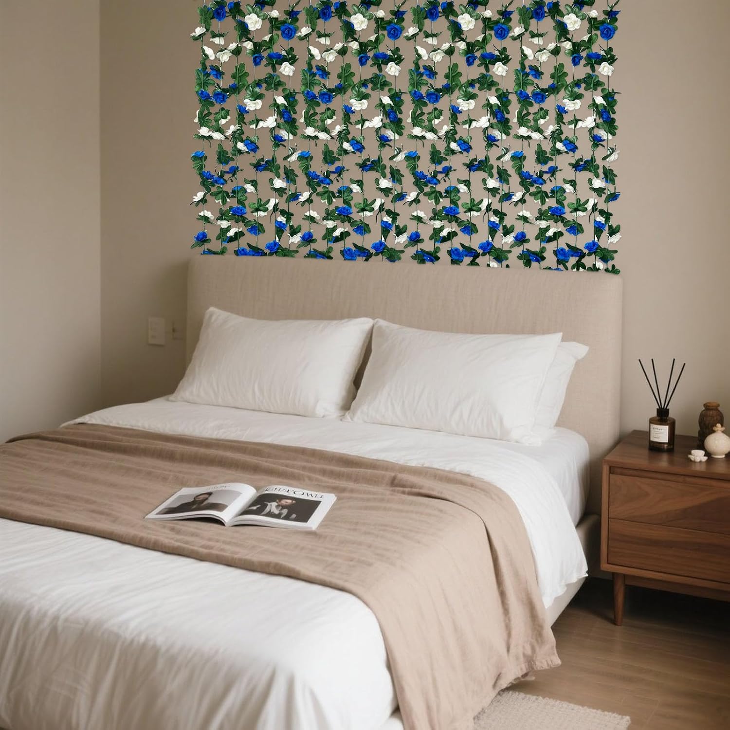 8Pcs 63Ft Royal Blue&White Fake Rose Hanging Flowers, Artificial Flower Vine, Hanging Floral Vine Garland for Wedding, Wall Arch, Halloween, Christmas Garden Backdrop Decor