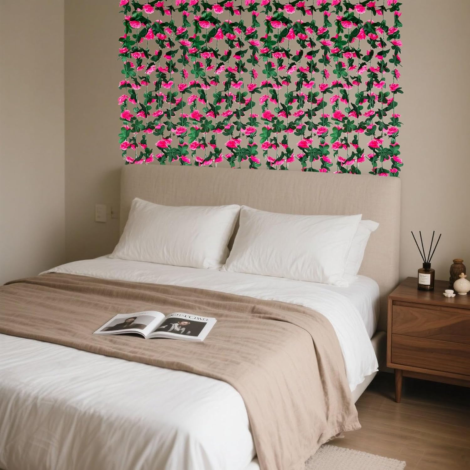 8Pcs 63Ft Fuchsia Rose Garland, Fake Rose Hanging Flowers, Artificial Flower Vine, Hanging Floral Vine Garland for Wedding, Birthday Party, Wall Arch, Halloween, Christmas Garden Backdrop Decor