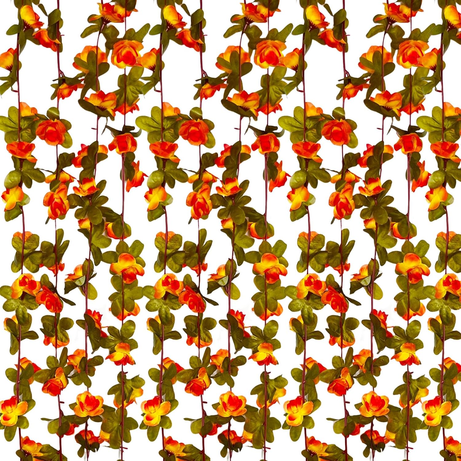 16Pcs 126Ft Orange Rose Garland, Fake Rose Hanging Flowers, Artificial Flower Vine, Hanging Floral Vine Garland for Wedding, Birthday Party, Wall Arch, Halloween, Christmas Garden Backdrop Decor