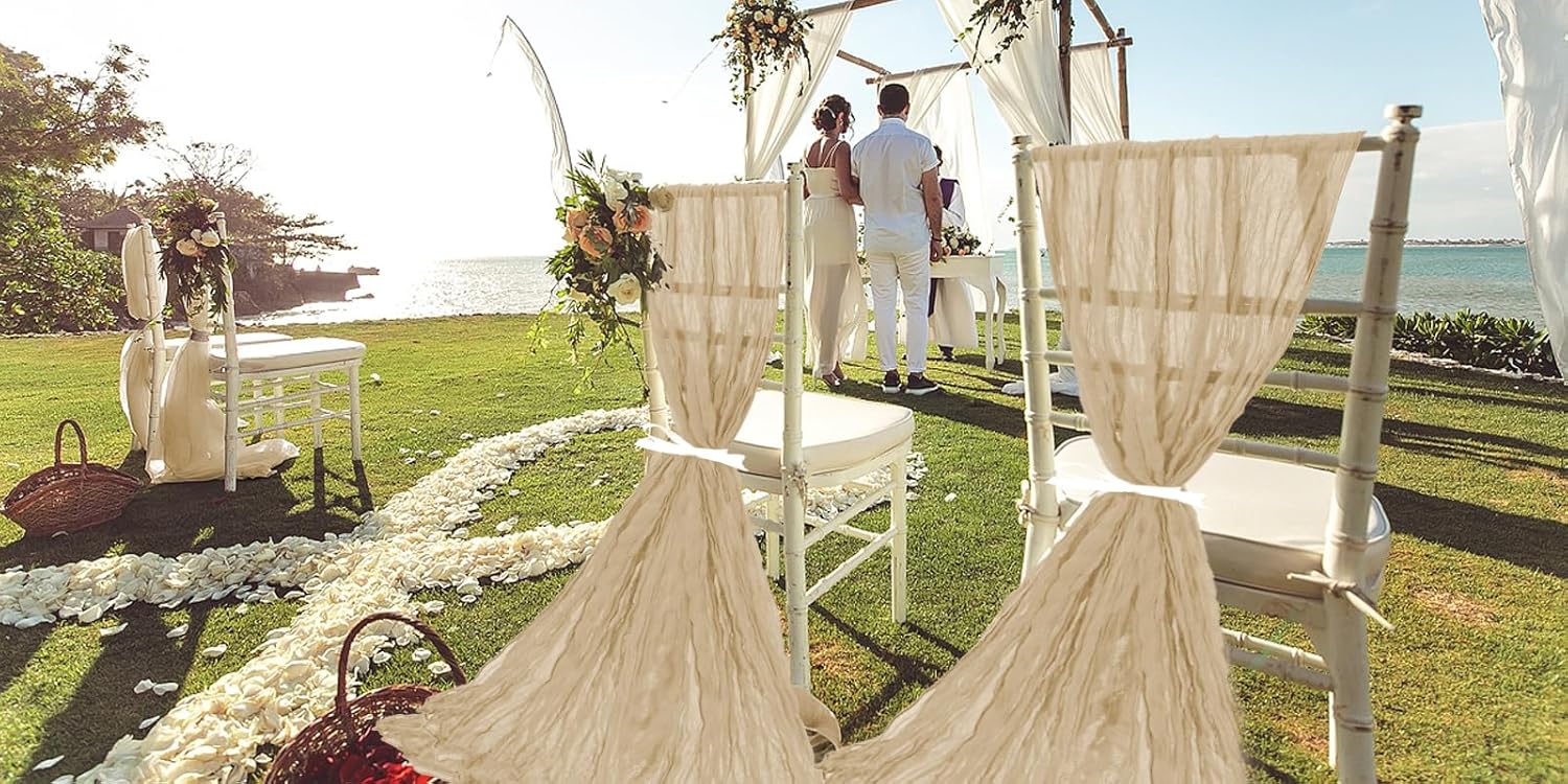 - 【Delicate Craftsmanship】Beige cheesecloth chair sashes adopt unique pleated workmanship, and the overall appearance is simple and elegant, creating an elegant and romantic atmosphere easily. The edges are carefully stitched to keep a perfect flowing condition, will not get broken or loose easily, can serve you for a long time