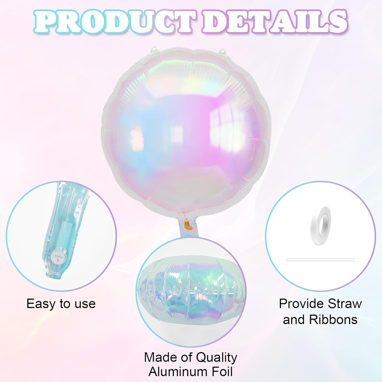 - Easy Setup: Designed for convenience, these iridescent balloons can be easily inflated with air (recommended inflation is 85%-90% to avoid overexpansion). The self-sealing valve ensures they remain inflated, and they can be deflated using a straw for reuse, making them a practical choice for ongoing celebrations.