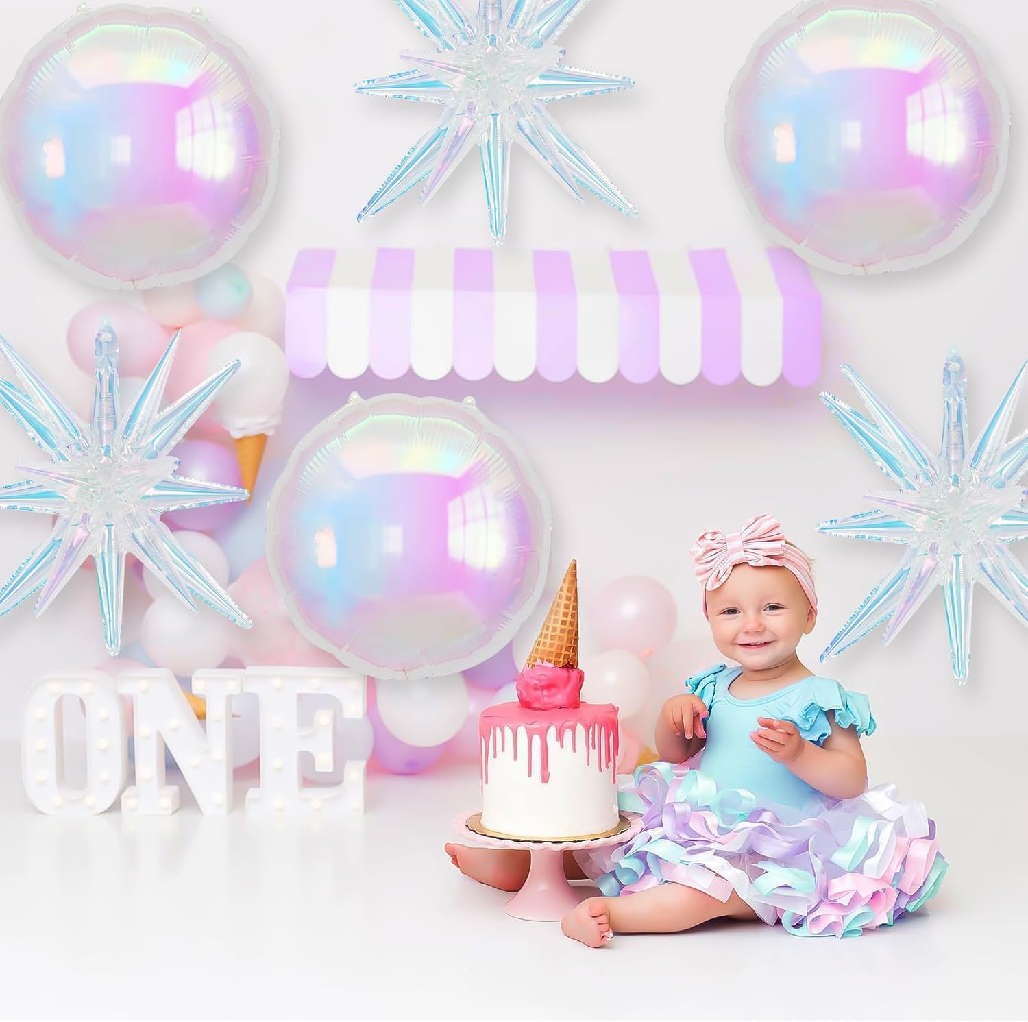 6Pcs Iridescent Foil Balloons, 22in Round Shaped Balloons and Explosion Star Iridescent Balloon, Large Holographic Clear Foil Balloon for Birthday Mermaid Rainbow Wedding Party Supplies