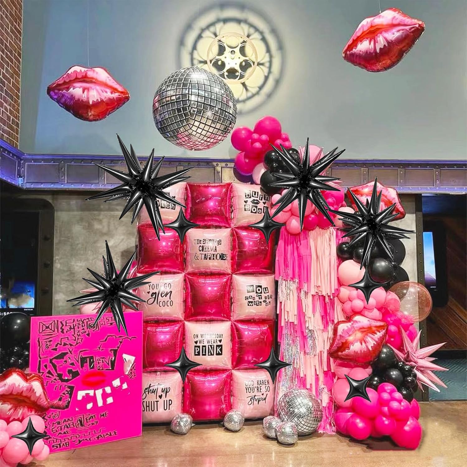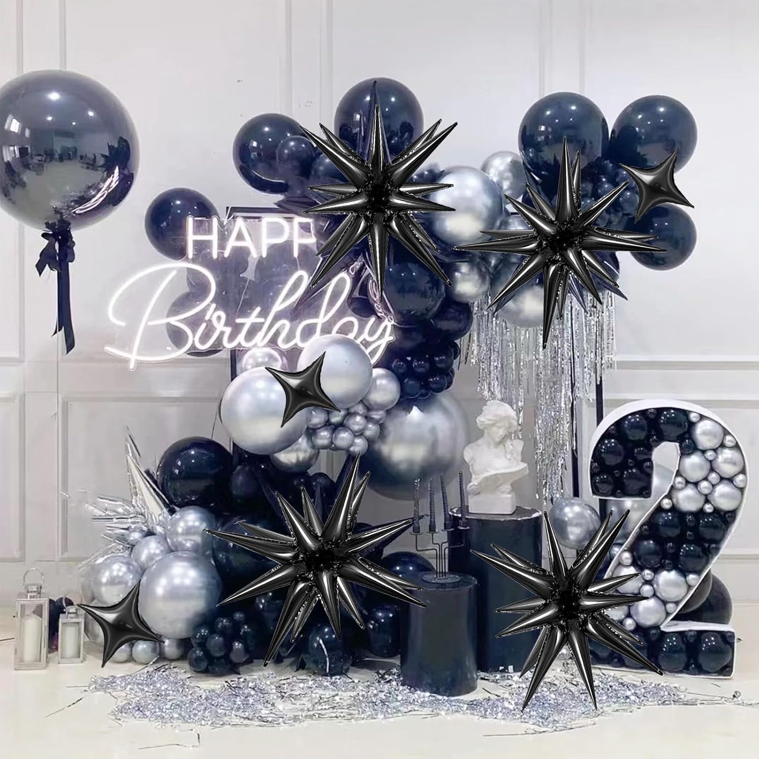 6 Pcs Explosion Star Foil Balloons- 12 Point Star Balloons,Black Spike Balloon and 10Pcs Four Pointed Balloon for Party Supplies Christmas Birthday Wedding Photo Booth