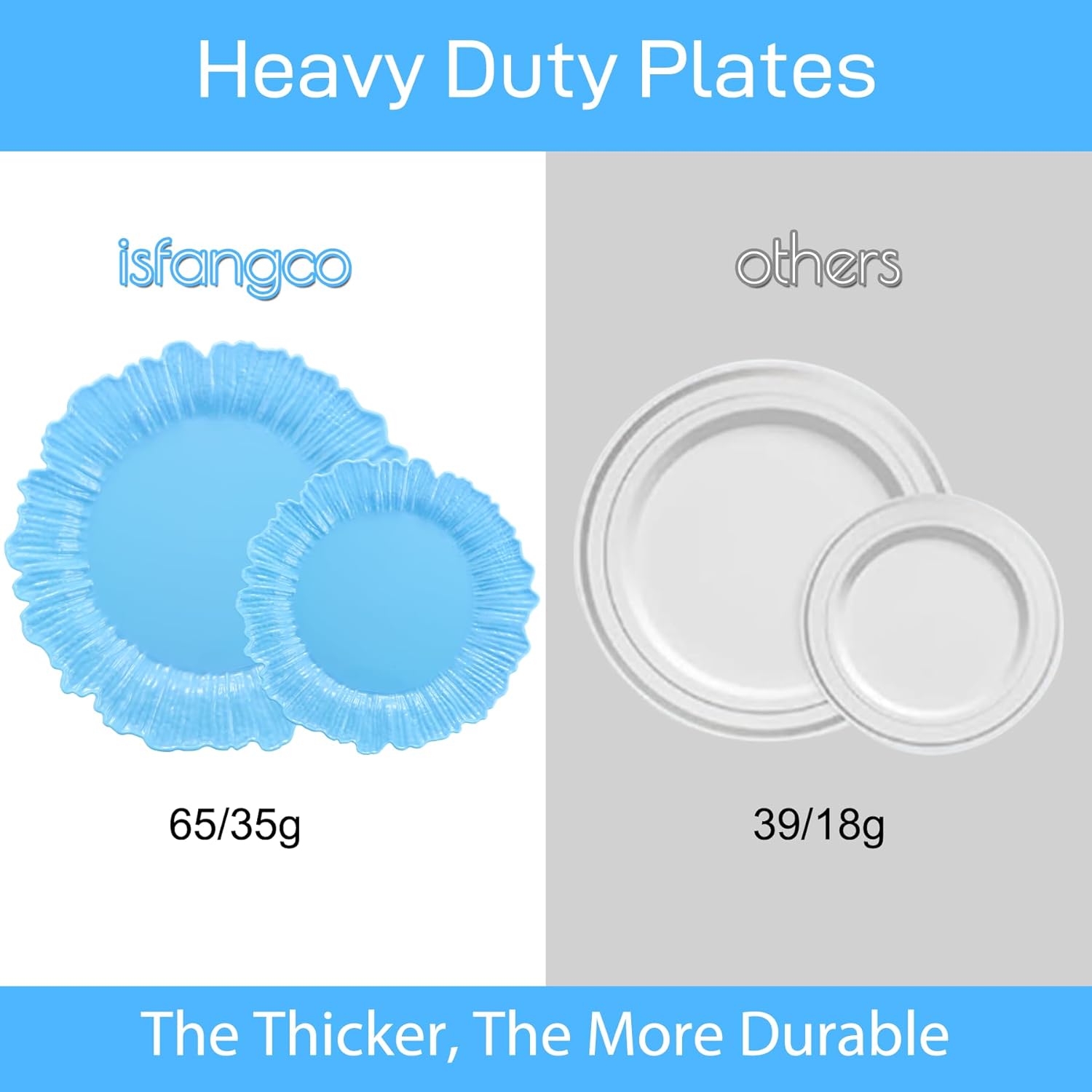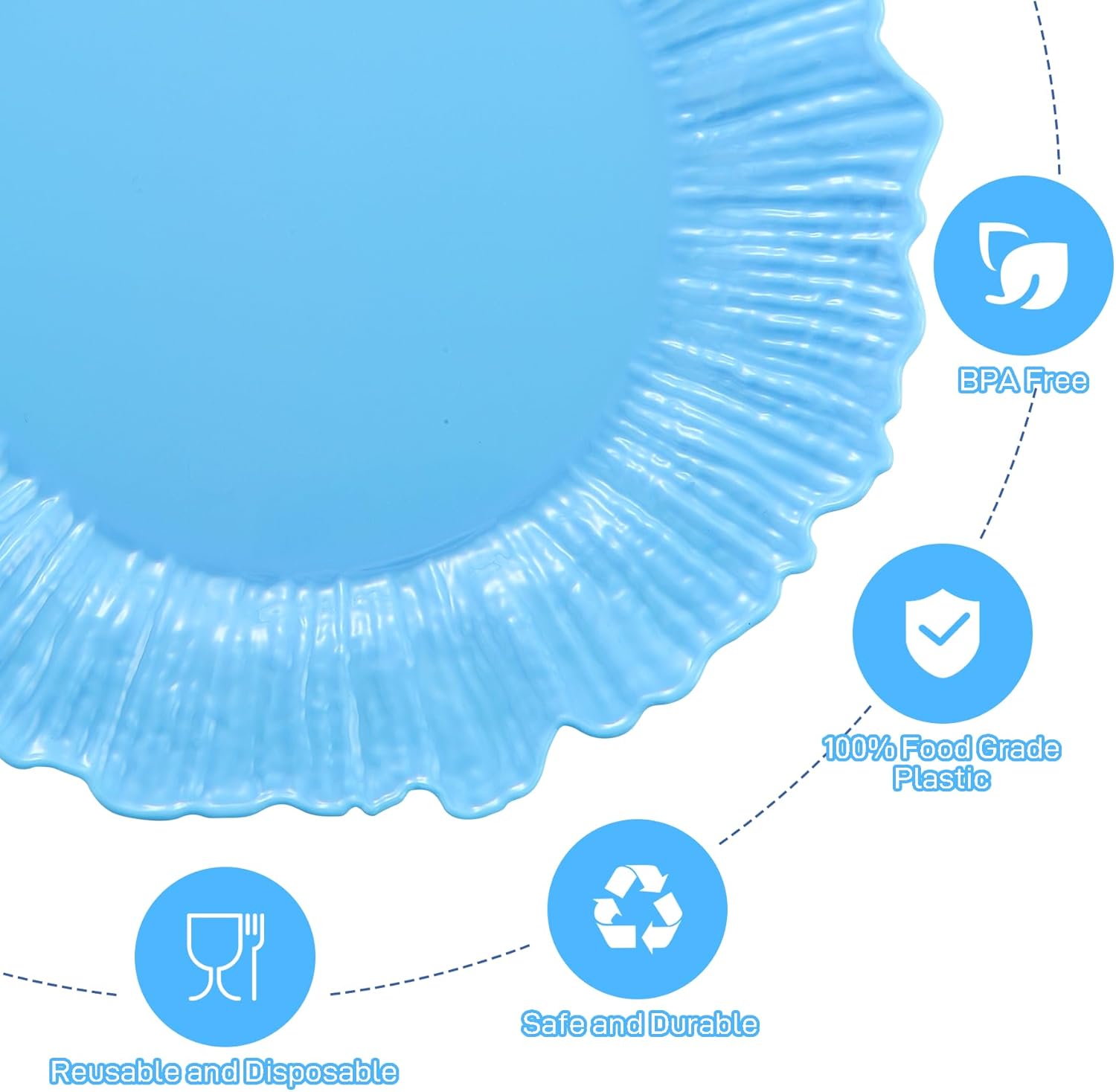 - Perfect for Any Occasion:Our elegant plastic plates with floral edge are lightweight, durable, and versatile—ideal for weddings, birthday parties, baby showers, anniversaries, and more. The blue plates add a stylish, festive touch to any event while making cleanup quick and easy.
