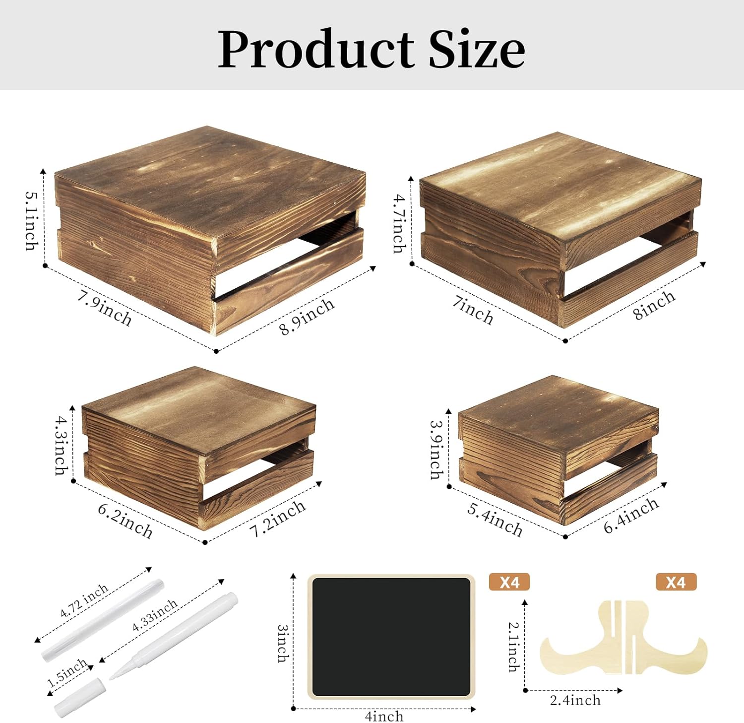 4 Pcs Buffet Risers with Mini Signs, Rustic Wood Cake Stands, Food Risers for Buffet Table, Dessert Display Stand, Wood Crates, Rustic Cake Stand for Party, Wedding, Birthday, Baby Shower, 4 Sizes
