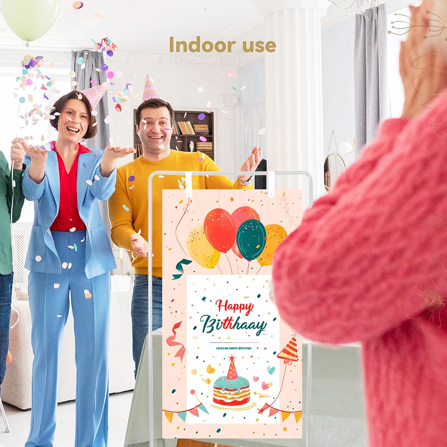 - Easy to Assemble/Disassemble: Follow the included installation construction to quickly assemble the large easel stand for display, allowing you to enjoy the process of your event. This versatile stand holder is ideal for baby showers, parties, bridal showers, weddings, housewarming, celebrations, storefront, exhibitions, conferences, etc(Physical sign not included)