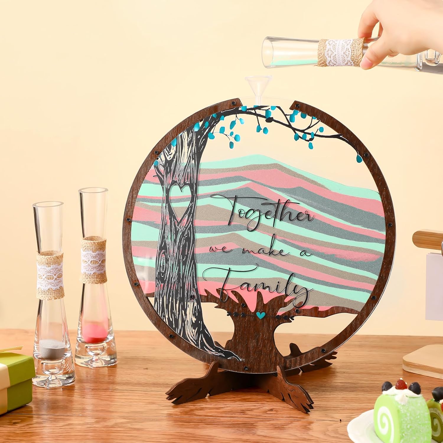 Anglechic Wedding Unity Sand Blended Family Sand Ceremony Kit Set Rustic Wedding Unity Ceremony Decorations for Bridal Shower Party Reception