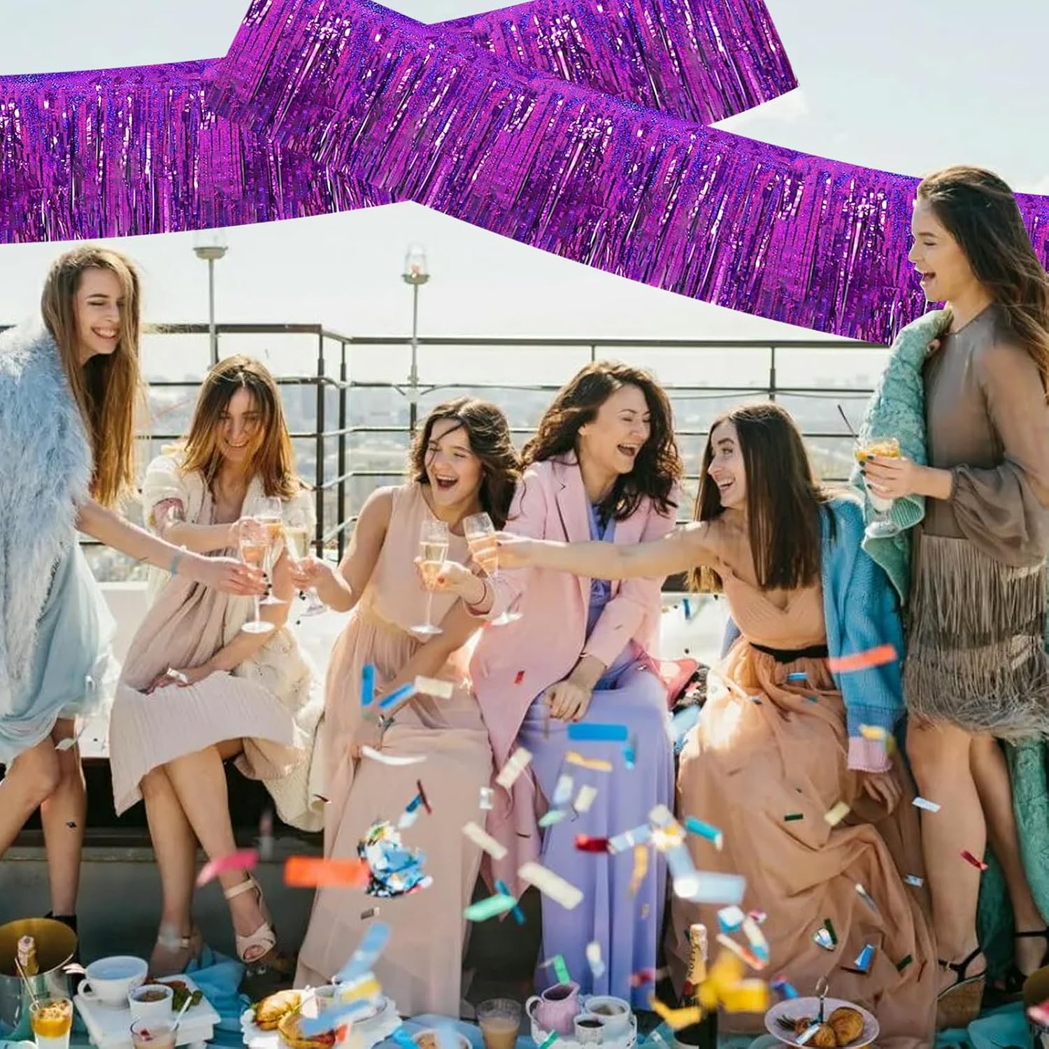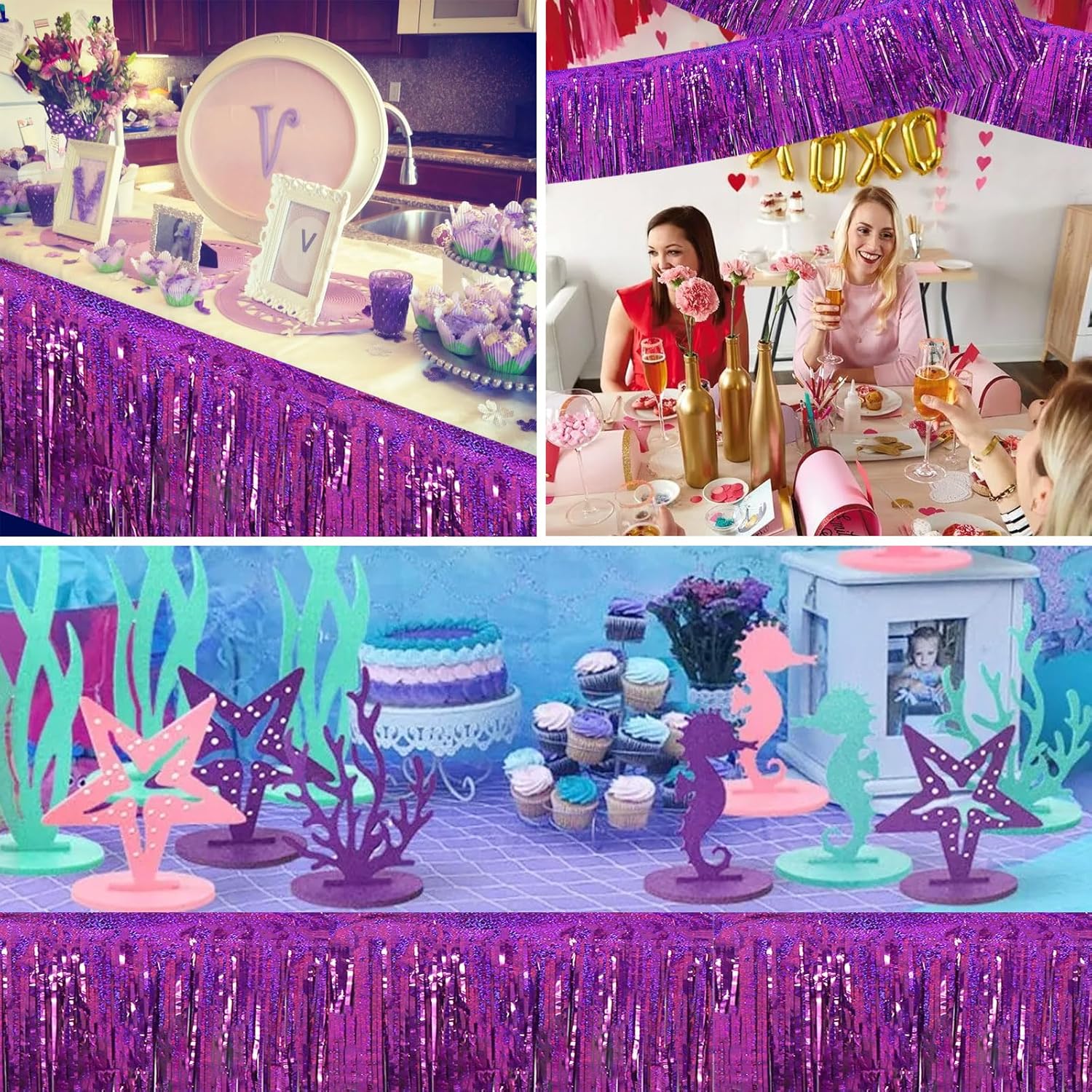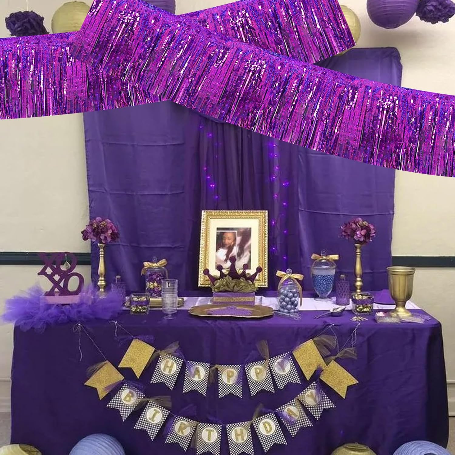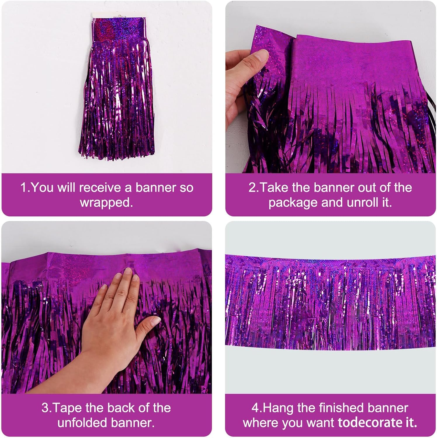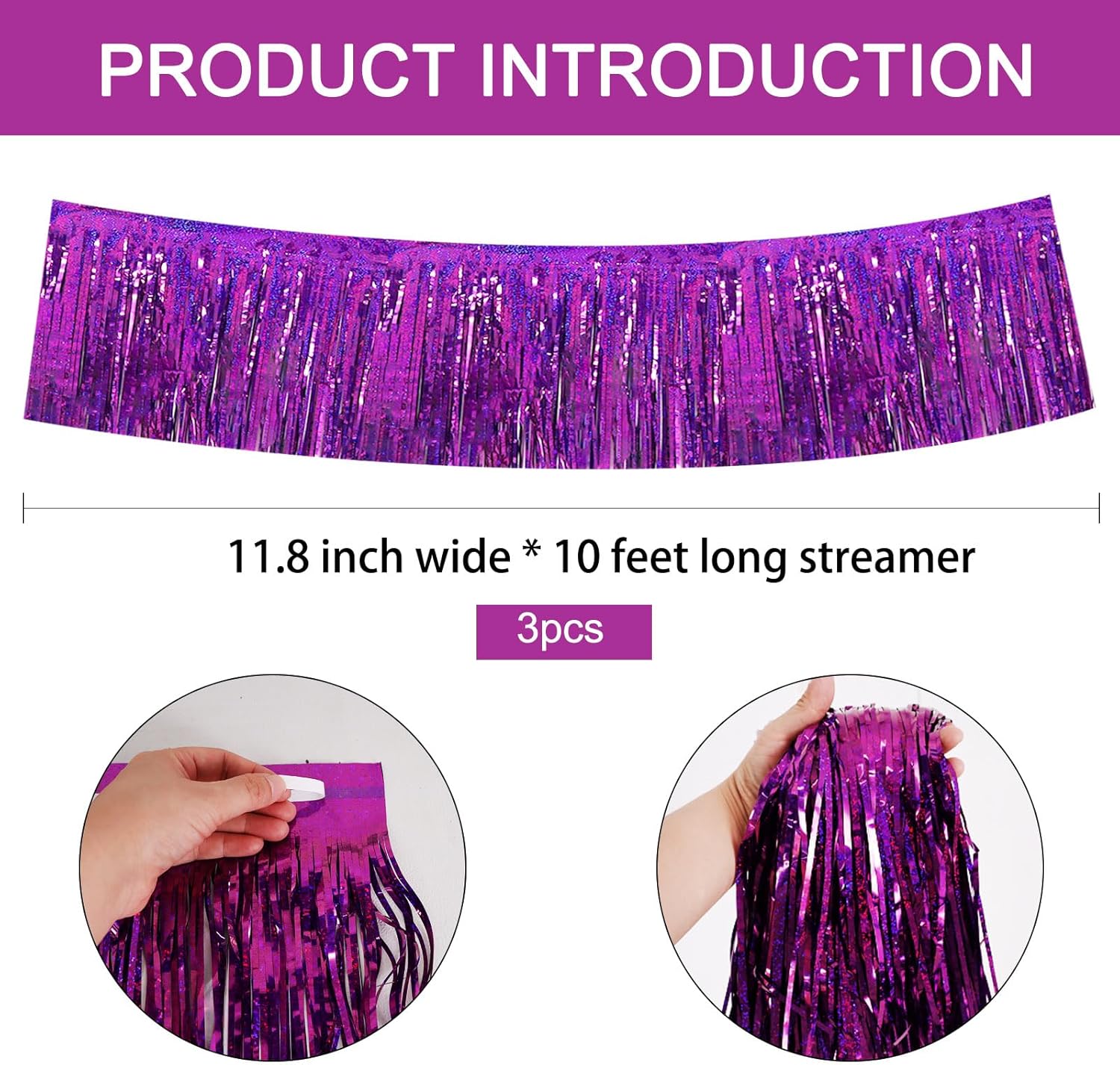 BEISHIDA 3 Packs Metallic Foil Fringe Garland Laser Purple Wall Hanging Tinsel Fringe Banners for Car Floats Bridal Shower Wedding Birthday Easter Graduation Holiday Party Decoration(30 Feet)