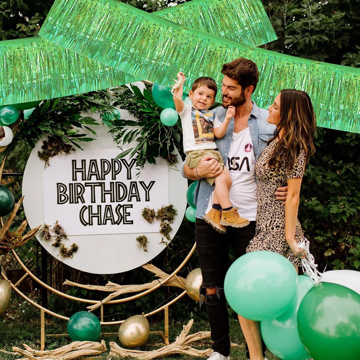 BEISHIDA 3 Packs Metallic Foil Fringe Garland Shining Green Wall Hanging Tinsel Fringe Banners for Car Floats Bridal Shower Wedding Birthday Easter Graduation Holiday Party Decoration(30 Feet)