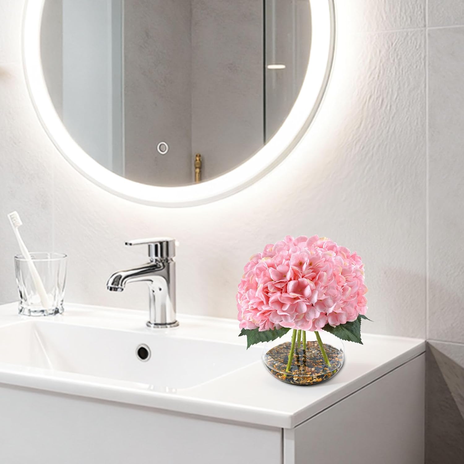 - Fake Flowers with Vase: Hydrangea artificial flowers is paired with a glass vase containing a rainflower stone. Unlike other artificial hydrangeas, the rainflower stone adds beauty and realism to the pink faux hydrangea flowers, giving people a different visual enjoyment.Our hydrangea artificial flower comes with vase decoration, no need to purchase a new vase
