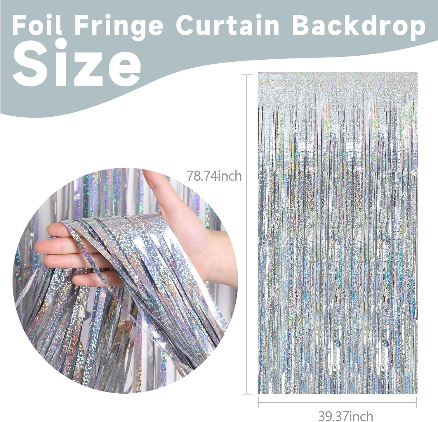 - Glitter Fringe Backdrop Set (5-Pack): Each dazzling curtain measures 3.28ft x 6.56ft – perfect for doors, walls, or photo booths! These extra-long foil streamers instantly transform any space into a party-ready celebration zone. Mix, layer, and customize your decor for the best results.