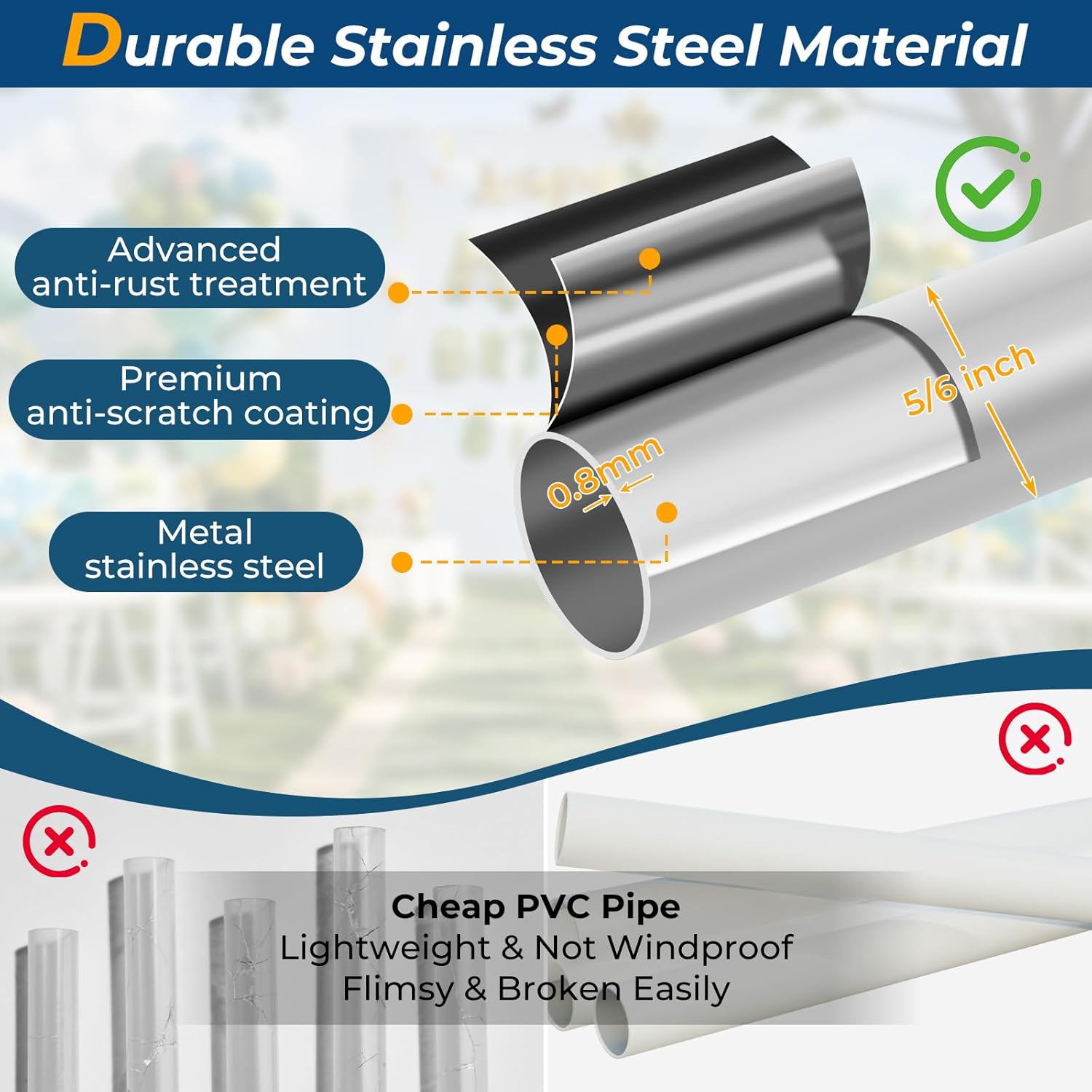 - âś… Heavy-Duty Stainless Steel Metal Poles: The support poles for the balloon column stand are made of high-strength metal material with a diameter of 20 millimeters, offering greater stability compared to plastic materials. The splicing design provides 200% greater durability than one-piece telescoping designs, making them less prone to bending or breaking during use.