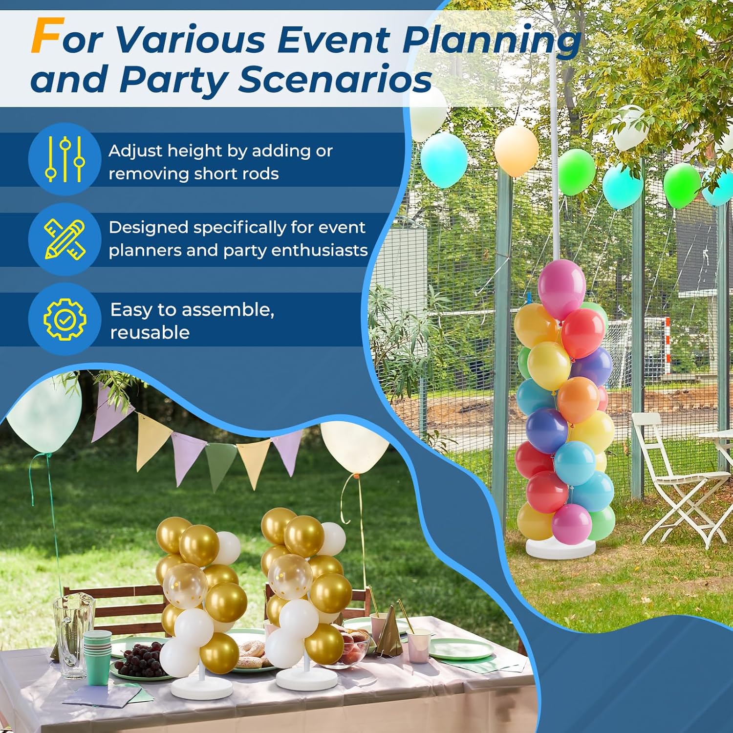 - âś… Event Decorations: The balloon towers set of 2 is the perfect decoration for birthday parties, weddings, anniversaries, events, mall openings, graduations, baby showers for boys/girls, gender reveal parties, Halloween, and Christmas decorations.