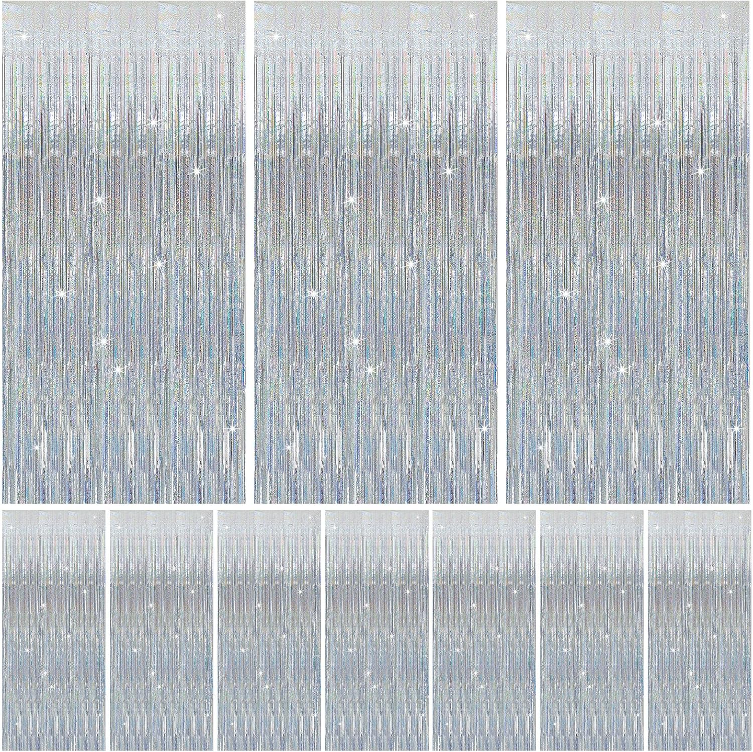 10 Pack Silver Tinsel Foil Fringe Curtains Party Decorations Streamers for Christmas Birthday Bachelorette Party Wedding Baby Shower Decor