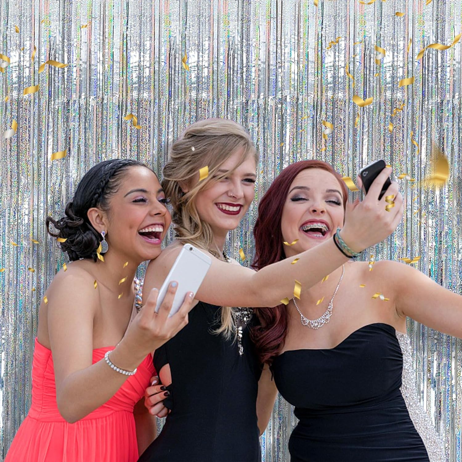 - Glitter Fringe Backdrop Set (10-Pack): Each dazzling curtain measures 3.28ft x 6.56ft – perfect for doors, walls, or photo booths! These extra-long foil streamers instantly transform any space into a party-ready celebration zone. Mix, layer, and customize your decor for the best results.