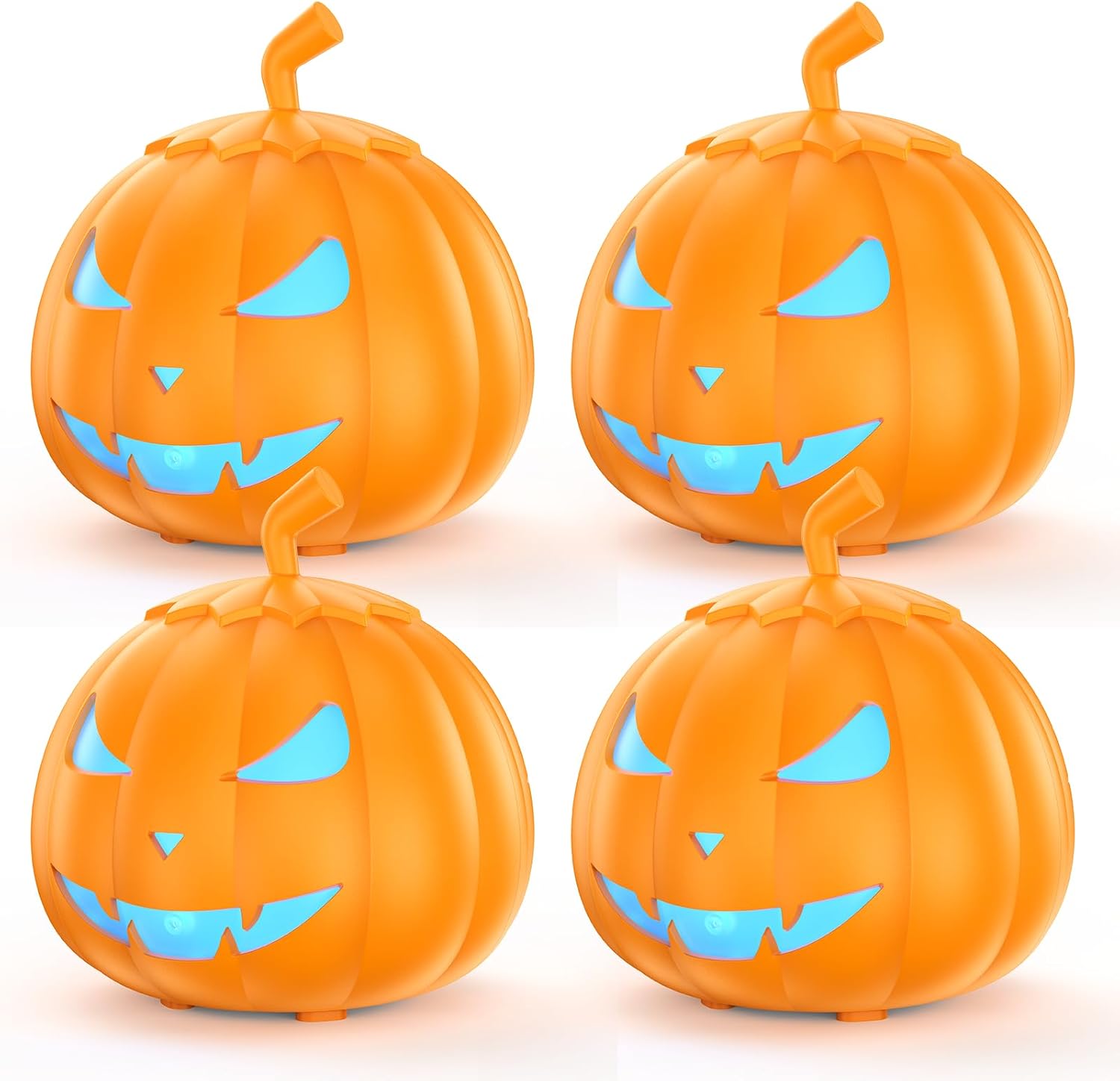 Fog Machine with LED RGB Lights, 800W Halloween Fog Machine with Remote Control, Pumpkin Smoke Machine 12 Colors Lighting Effect for Halloween Band DJ Show Club Outdoor Camping, 4 Pack