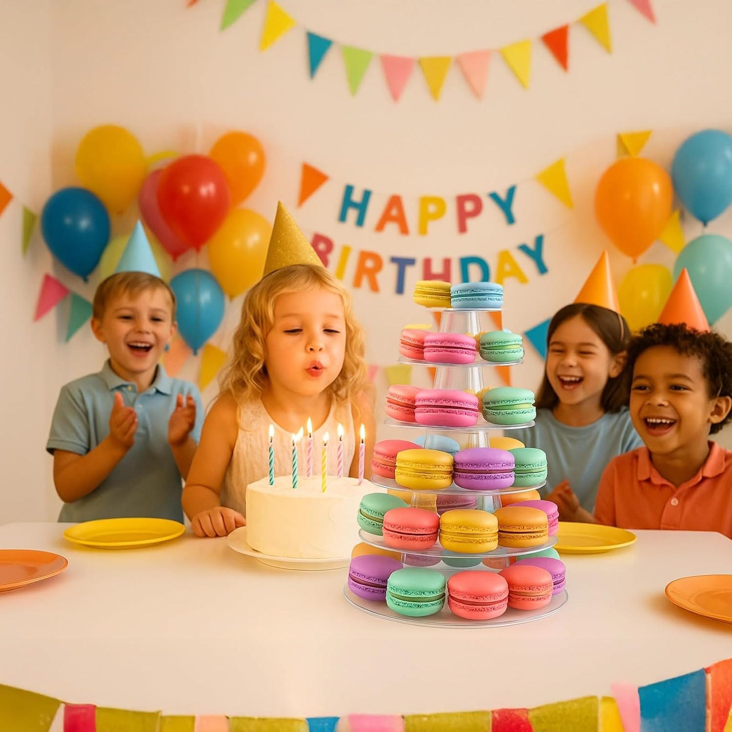 6-Tier Macaron Display Tower, Multi-Functional Cake Stand for Weddings & Parties, Set of 2, Includes Clear Plastic Design, Holds Up to 95 Macarons