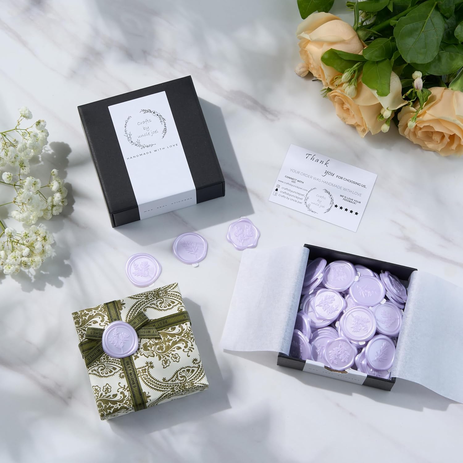 - PREMIUM DESIGNS & QUALITY: Elevate your wedding invitations with Crafts by Uncle Joel's envelope seal stickers. Each beautifully packaged set of 60 stickers includes 3 popular and complementary designs (20 stickers per design), adding a sophisticated touch. Made from top-grade real wax, each 30mm (1.2 in) sticker has a 2.2mm (0.08 in) thickness and weighs 0.03 oz. Perfect for wedding envelopes, these premium wax stamp stickers offer a vintage charm that’s ideal for special occasions.