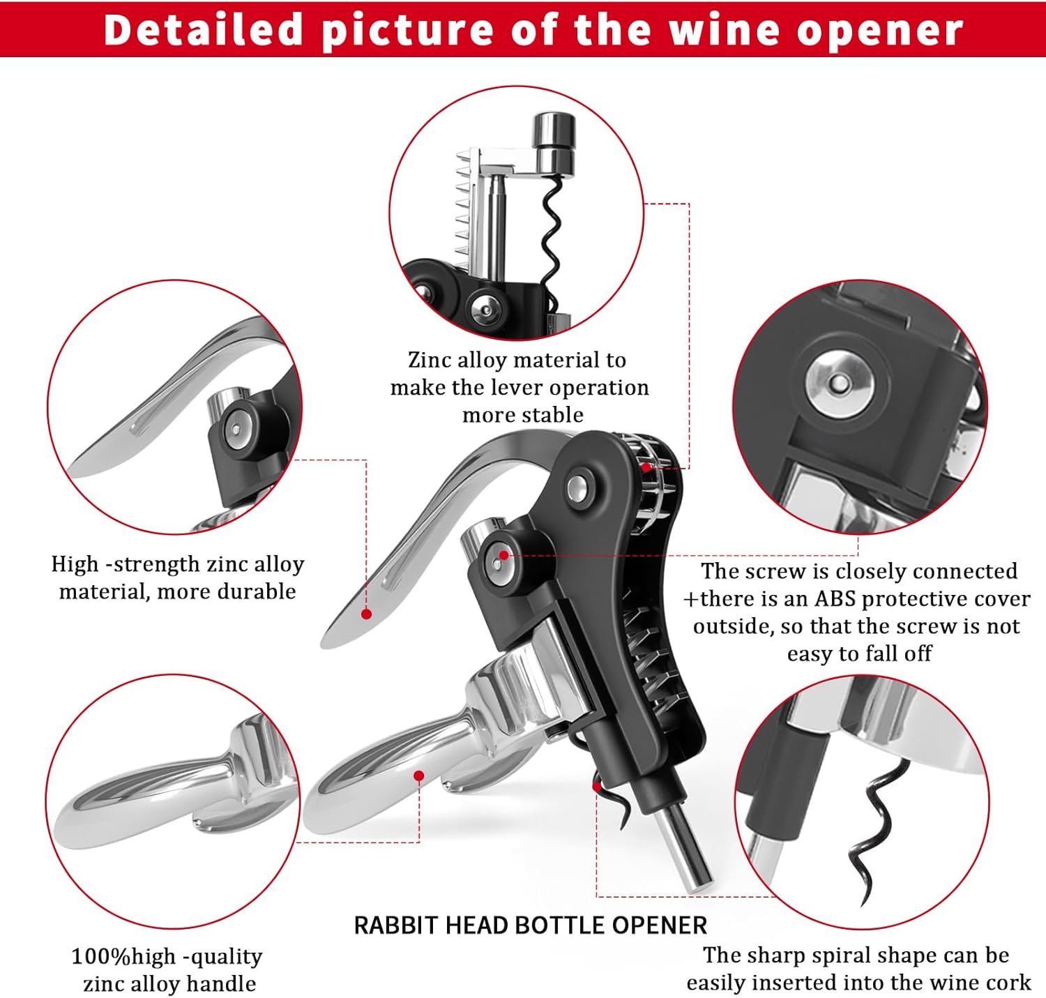 - 1.No Broken Cork: Our rabbit bottle opener is made of high-quality zinc alloy with a low-profile matte black coating on the surface. The durable screw is suitable for corks of various structures, and our spiral part is specially coated with Teflon to ensure that the cork can be pushed in smoothly with just a light pull. Say goodbye to the trouble of cork breakage