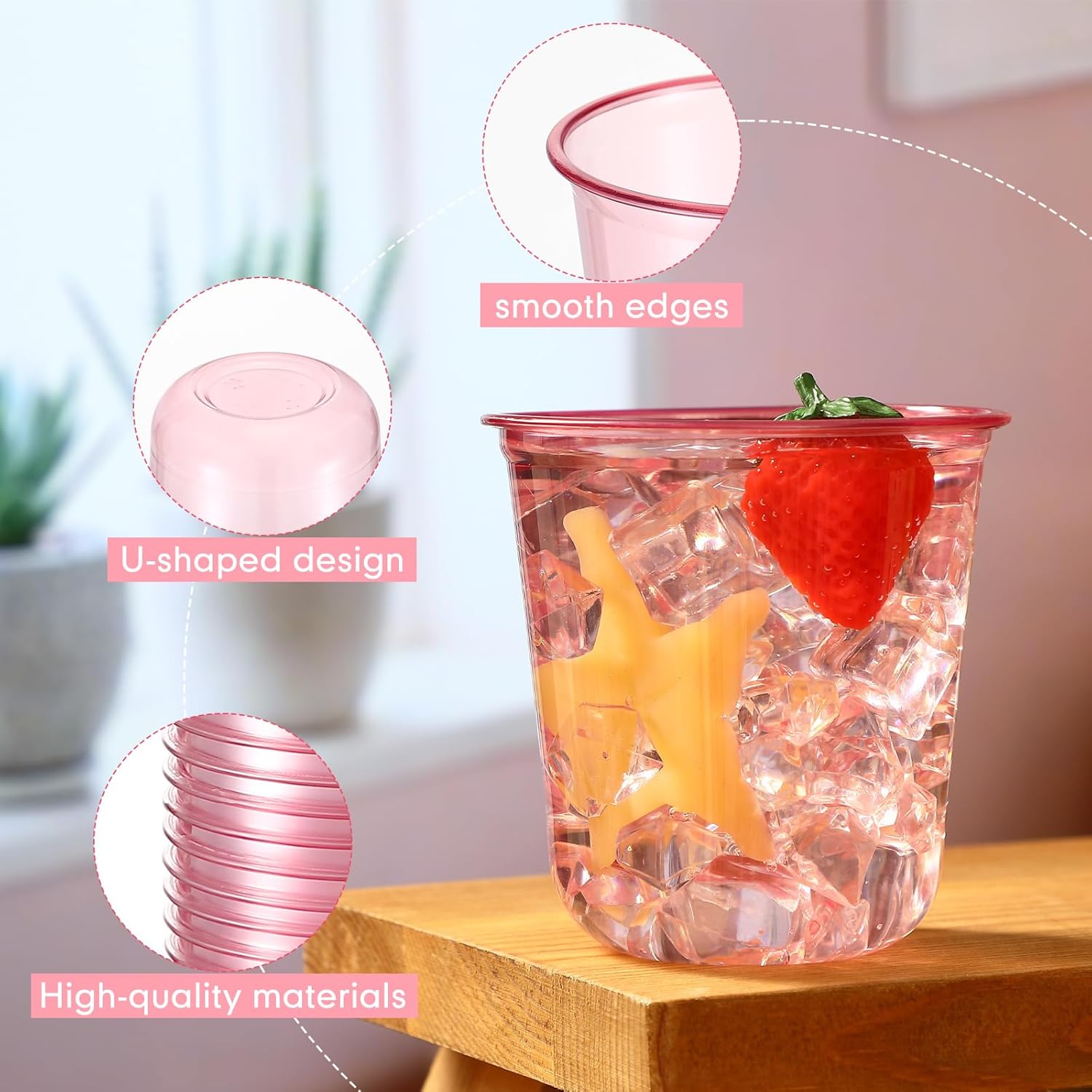 200 Pcs Disposable Stemless Glasses 12oz Crystal Plastic Wine Glasses Clear Classic Pet Cup for Meeting Weddings Birthdays Cocktail Christmas Party Supplies (Pink)