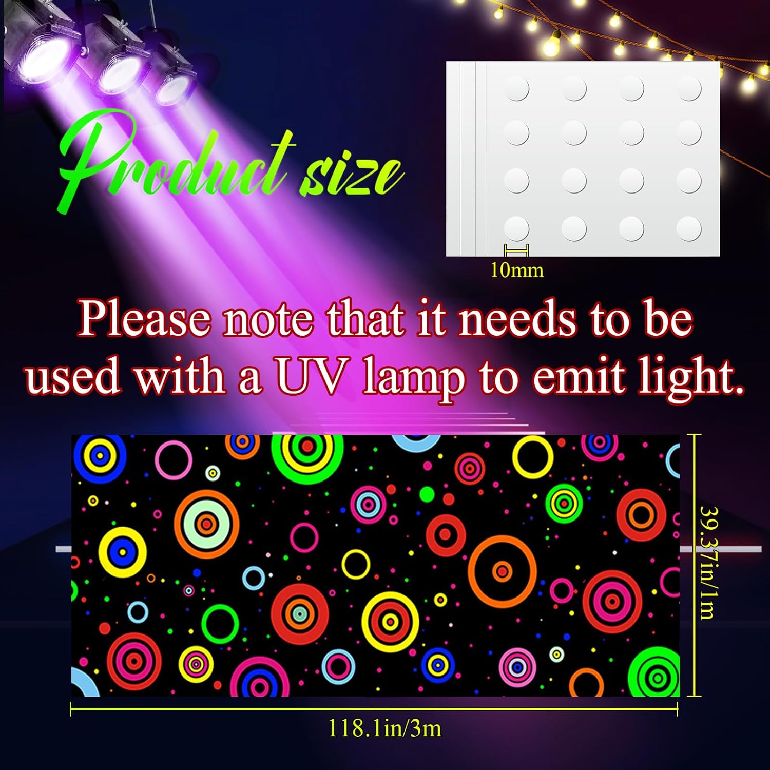 - Bright Fluorescent Color: the light up dance floor shines brightly under UV blacklight, with fluorescent orange, fluorescent red, fluorescent green, fluorescent yellow, and fluorescent blue rings staggered against each other, making it simple to draw the attention of others; Please note that it will have the effect of fluorescence, but it needs to be irradiated by purple lamp to have the effect; If it is not irradiated, it is a normal pattern