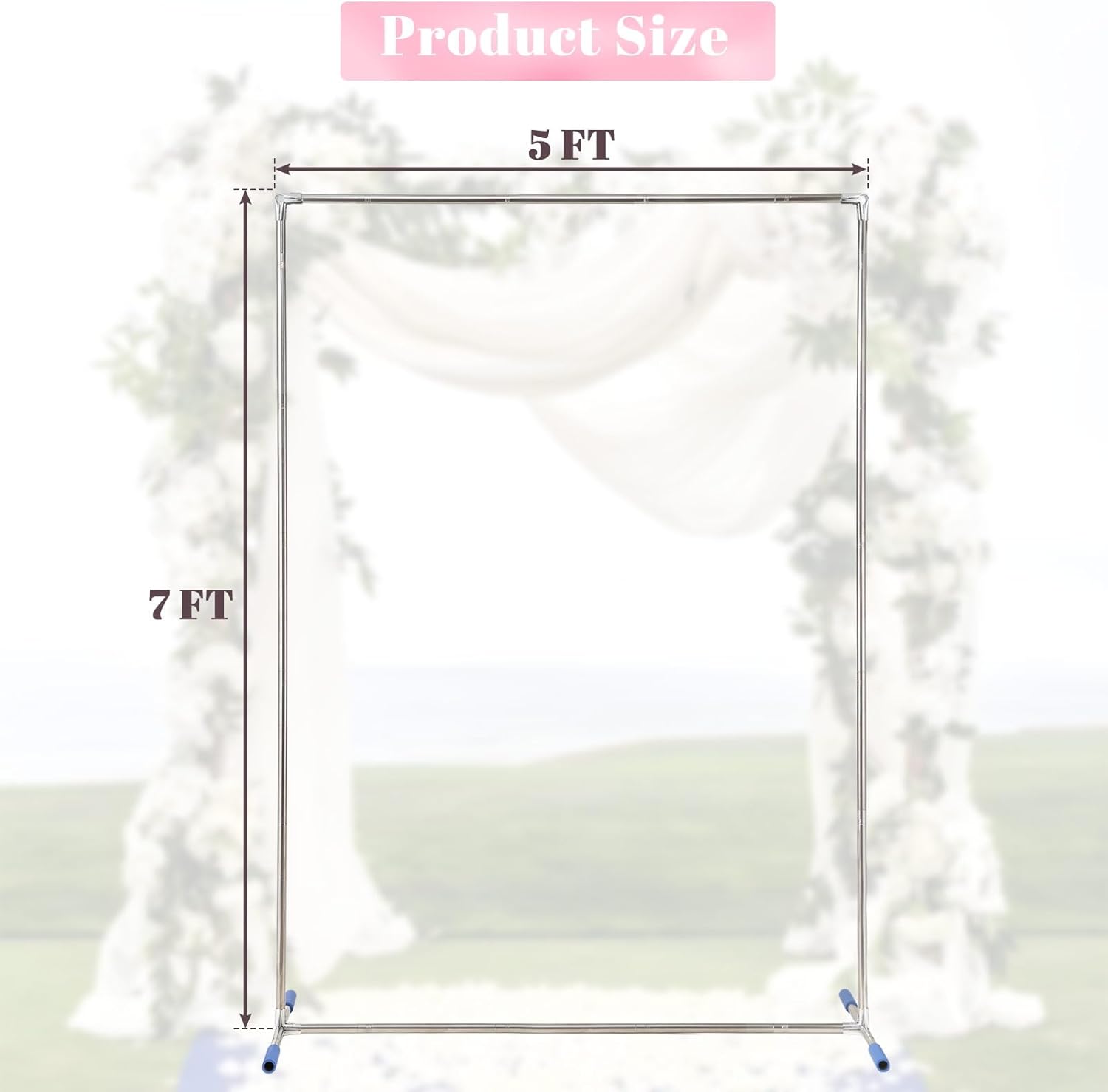 - Sturdy and Durable-Our wedding arch backdrop stand is measured by 7x5 FT(H x W),made of high quality stainless steel,ensuring that it can withstand the heavy weight of the decorations for a long time without bending or breaking