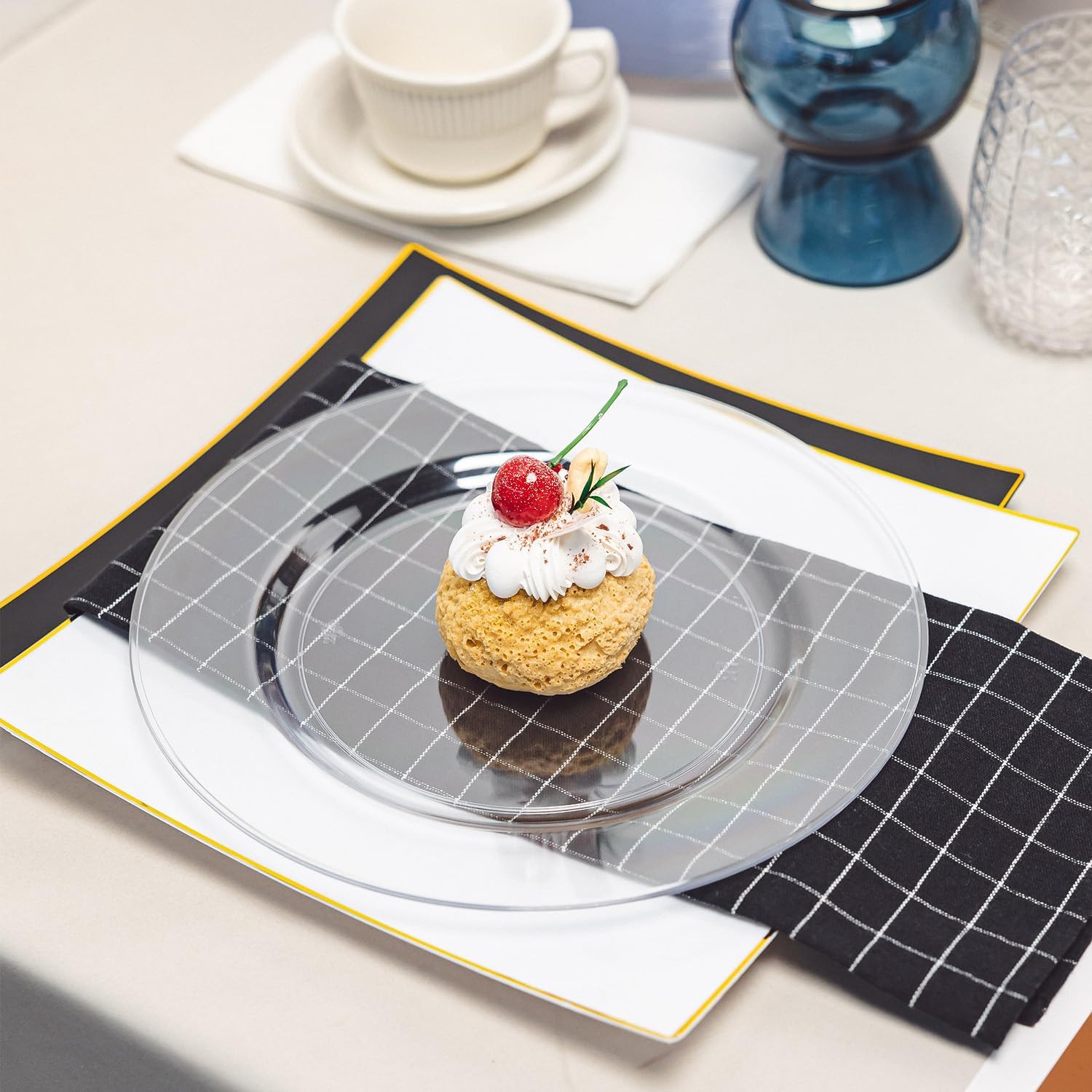 - DISPOSABLE AND REUSABLE: Our clear disposable dinner plates feature a minimalist design—no patterns or prints. Simply rinse with water after use to restore their like-new shine. With minimal care, these durable plates can be dried and reused