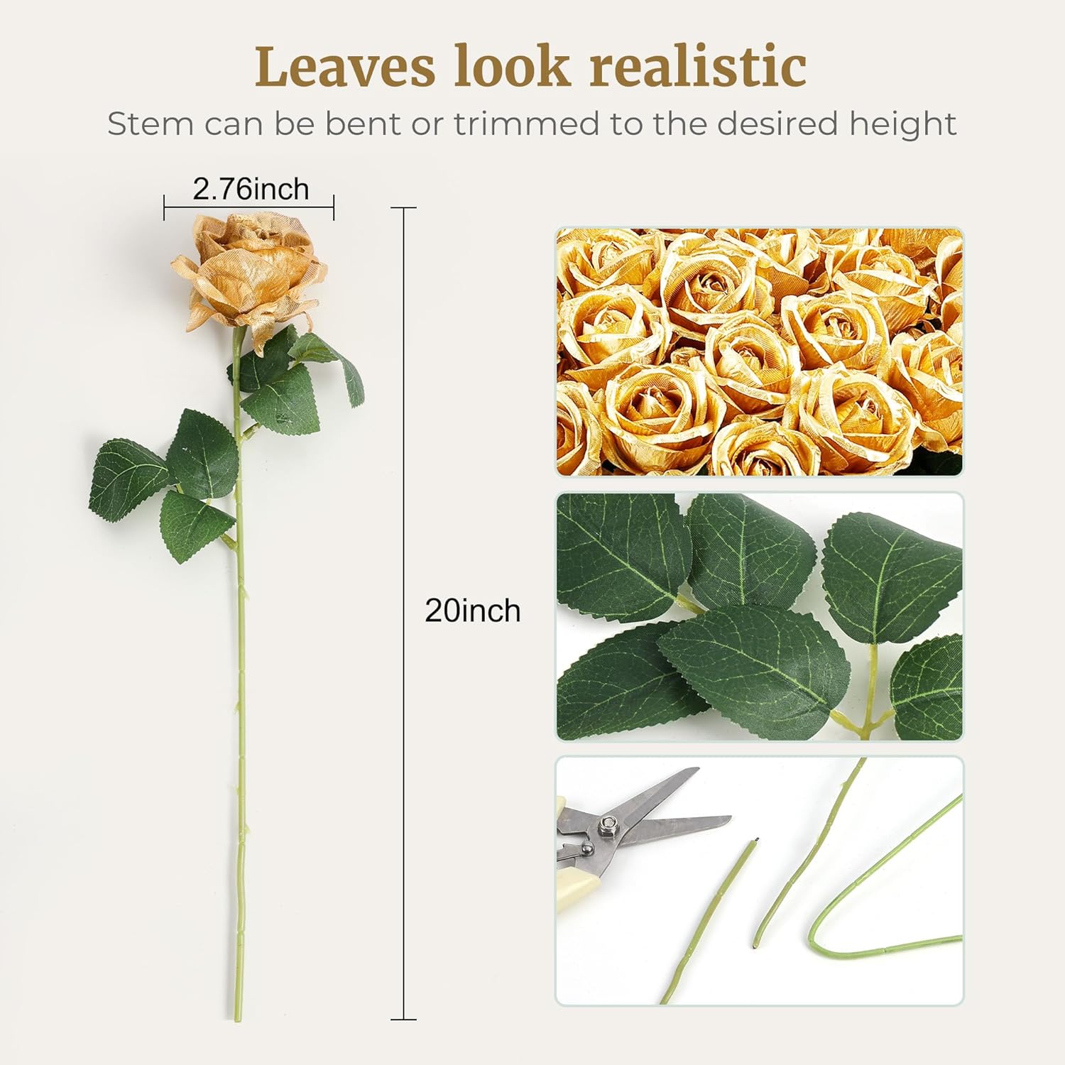- Luxury Velvet & Silk Durability: Unlike fragile real blooms, these rose gold flowers resist fading and wear, maintaining vibrancy for years in outdoor wedding arbor decor or Mother's Day displays. Their premium silk construction ensures gold roses withstand graduations and housewarming events while retaining a lavish feel