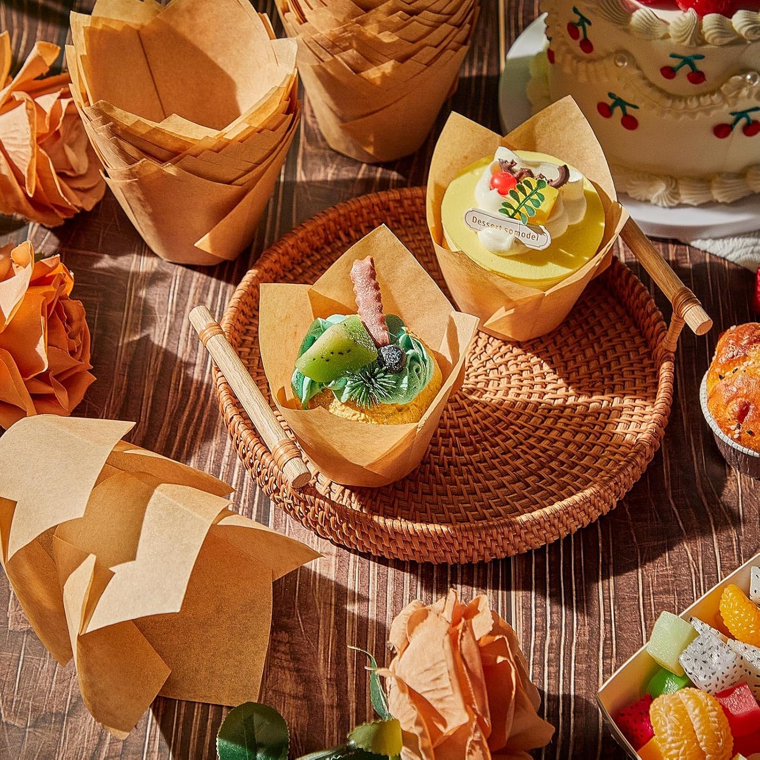 - Tulip Design Liners: adding aesthetic to your muffins or cupcakes, our paper baking cups are designed to mimic blooming tulip flowers; This design gives your cupcakes a beautiful appearance and can be applied as an attractive adornment, making your culinary creations visually delightful
