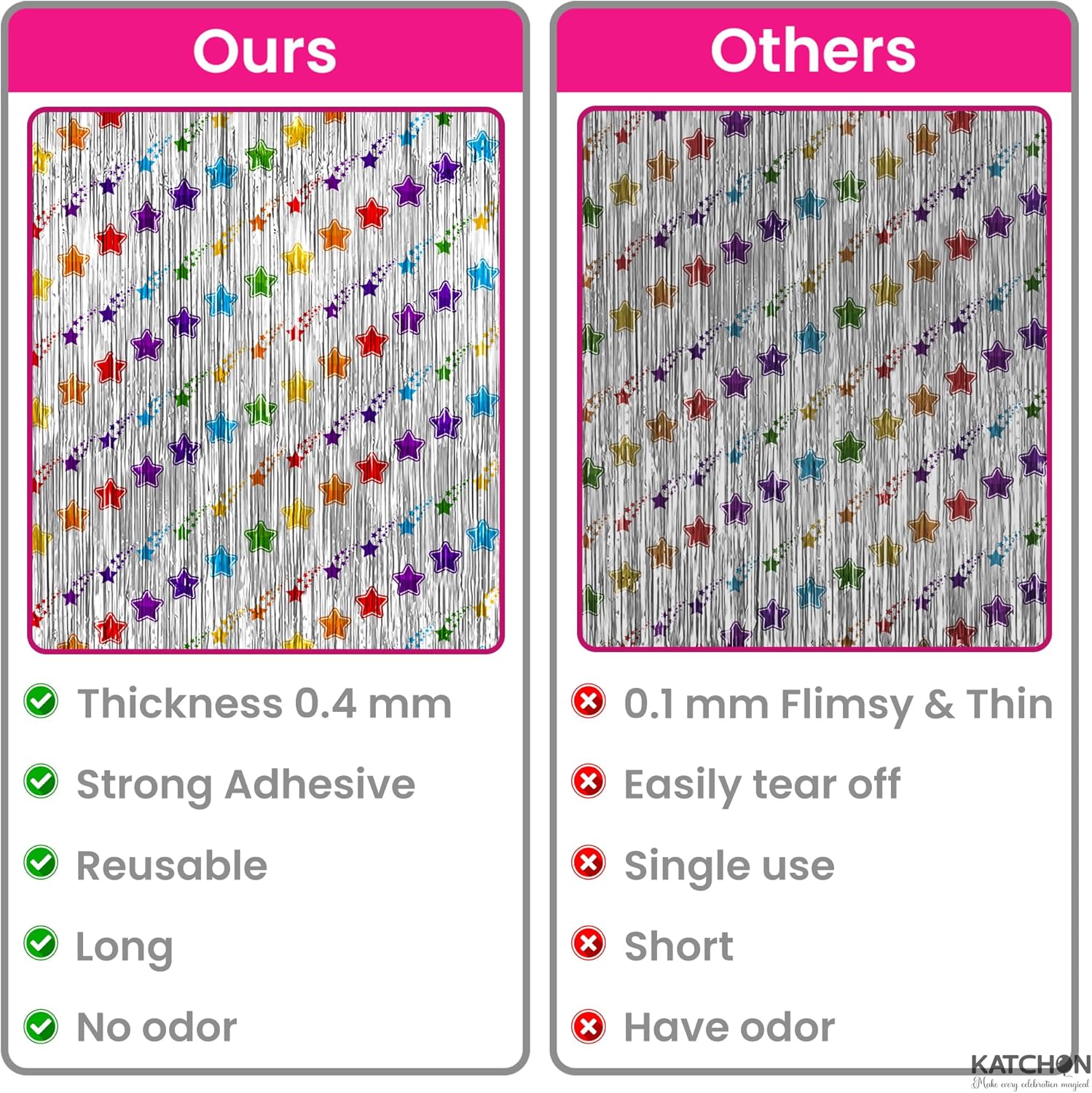 - STURDY AND REUSABLE | HIGH QUALITY : This pack includes 2 silver foil fringe curtain panels with a rainbow star design that shines bright and ishigh quality product which is sturdy enough to be reused as silver door streamers, silver wall fringe, or a fun silver backdrop curtain for playrooms, classrooms, or photo booths. The star foil adds charm to any silver streamer backdrop, silver streamers backdrop, silver garland backdrop, or party backdrop for birthdays, baby showers, or themed events.