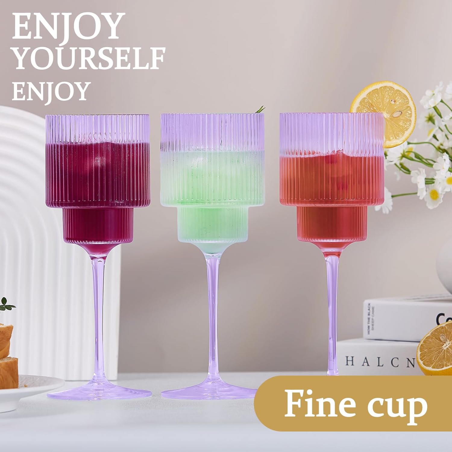 - 【Stripe Feel Design】Unlike other wine glasses, it features a beautiful ripple texture & square design to make it look like a work of art. The shape of the wine glasses is designed with a unique Origami Style, brings a European retro flavor, which is very suitable for leisure and entertainment or more formal dinners.
