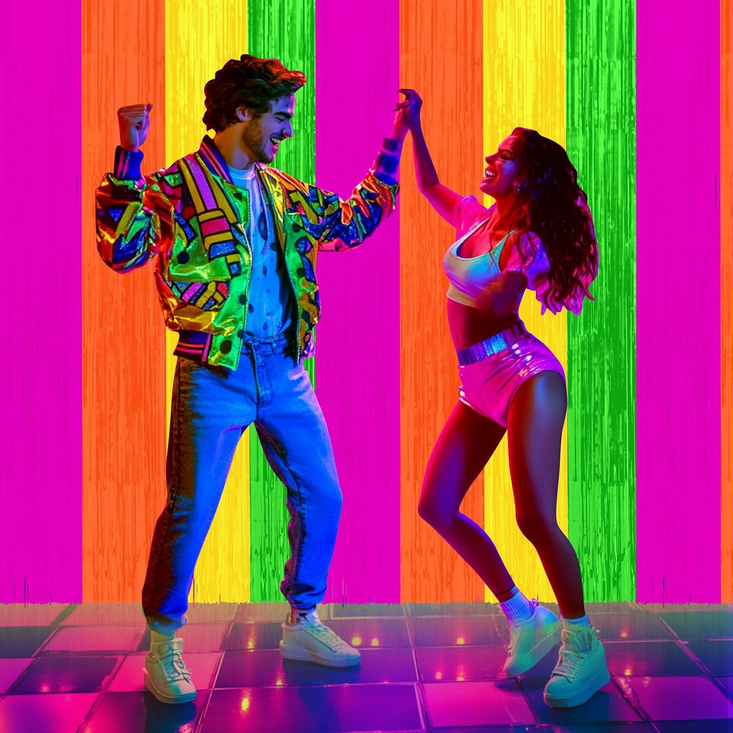 - Easy to Use: Our neon foil fringe curtains come with self-adhesive tape at the top for easy use. Simply tear off the backing and attach it wherever you desire, creating a sparkling and festive atmosphere at your party with ease