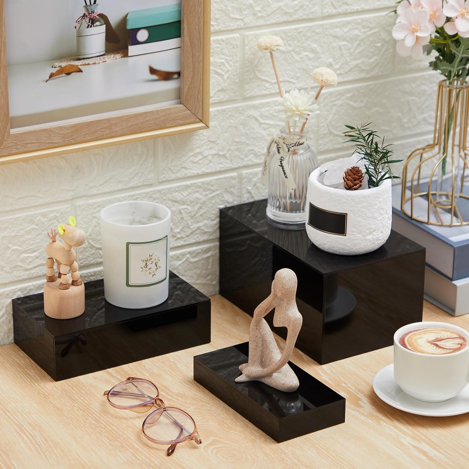 - Black Aesthetics: our acrylic display stands showcase an elegant design; The black color offers an unobstructed view of your displayed items, enhancing their beauty and visibility; Whether it's jewelry, cakes or other products, these cubes ensure they are the center of attention