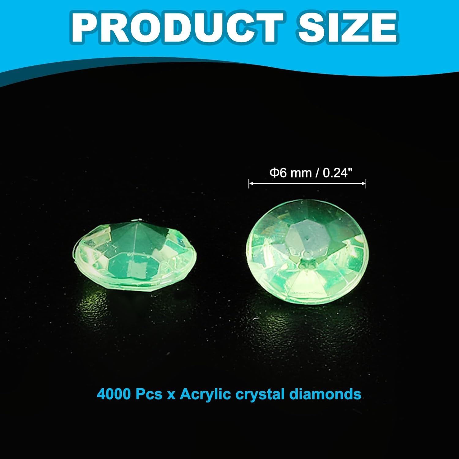 - Color: Light Green; Material: Acrylic; Diameter: 6 mm / 0.24 Inch; Packing List: 4000 Pcs x Acrylic crystal diamonds