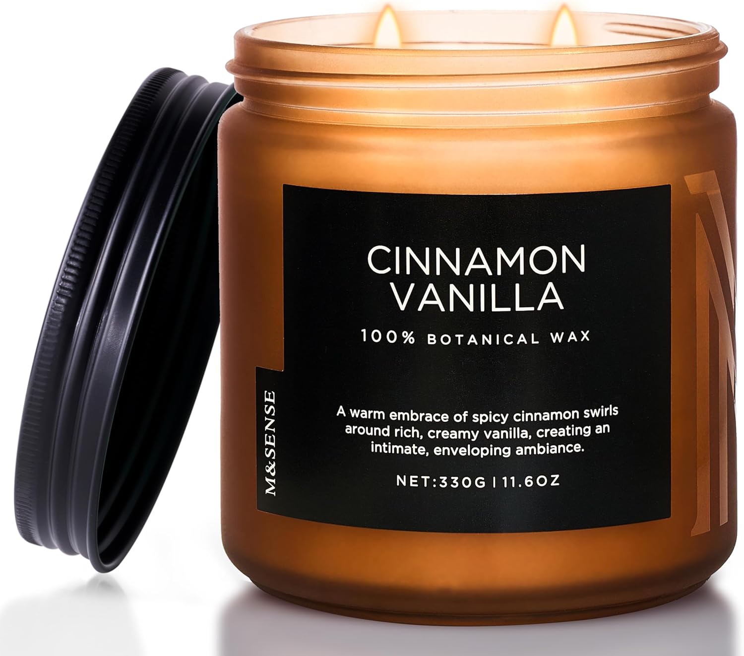 M&SENSE Cinnamon Vanilla Fall Scented Candles for Home, Natural Soy Wax 11.6oz 70 Hours Large Long Lasting Strong Scented Classic 2 Wicks Jar Candle Gift for Housewarming