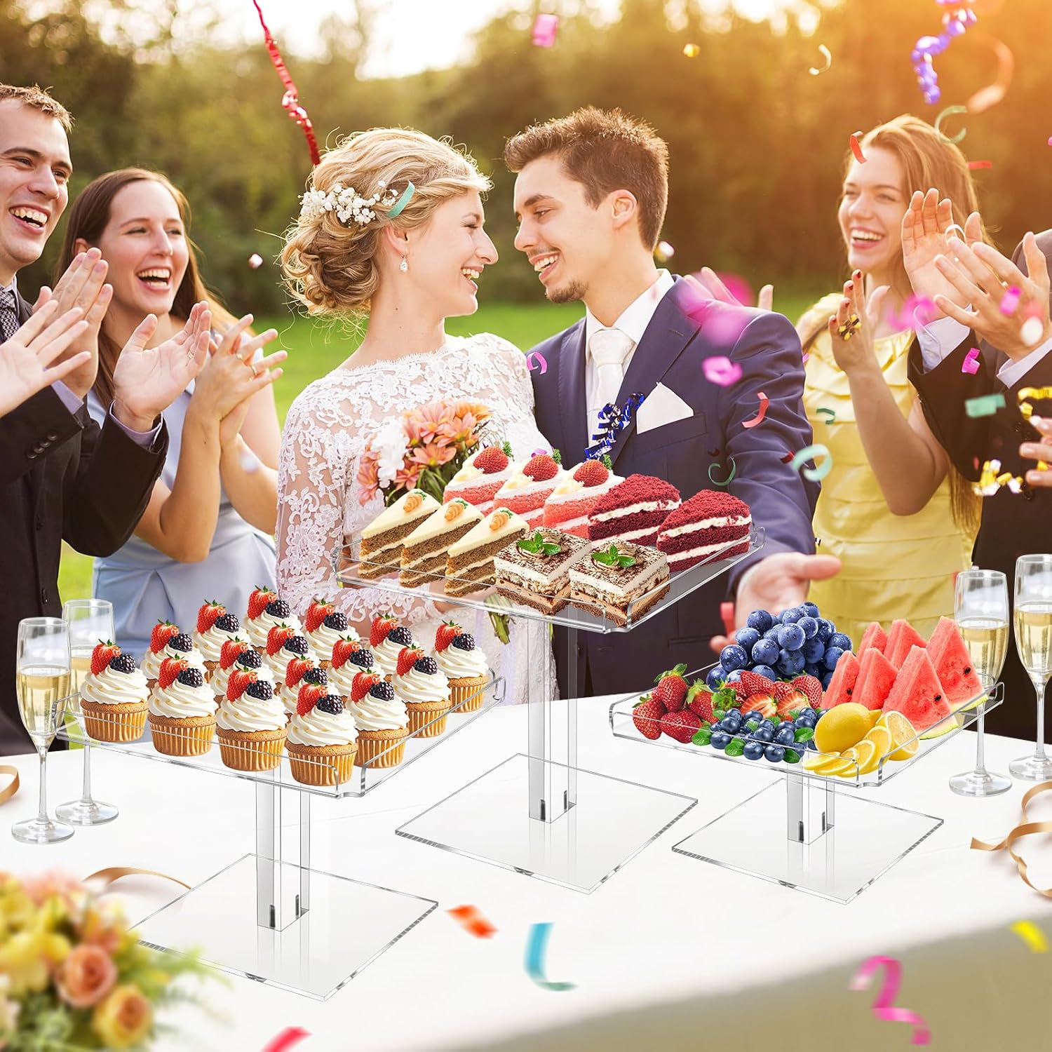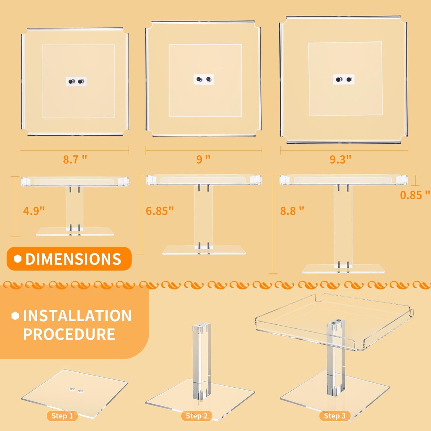 - 【Widely Used】 Acrylic display stands can be used in many ways. You can use them to display cupcakes, pies, fruit, pastries, cookies, chocolates, jewellery, cosmetics, figures and much more. They are perfect for weddings, birthday parties, Christmas, Thanksgiving and other holiday gatherings