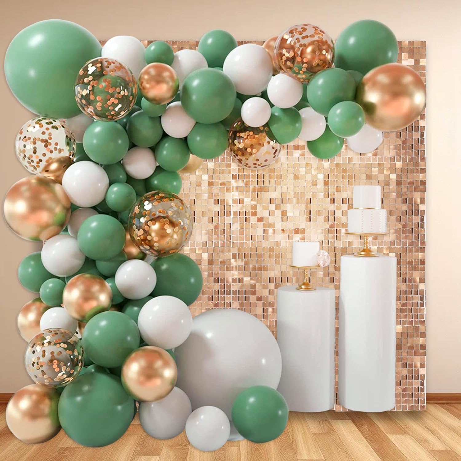 - 【Shimmer Wall Backdrops】The sequins of the champagne gold glitter wall panels will move with the wind and sparkle when the light hits them. You can match it with any balloon, wall, outdoor or indoor backdrop to a fantastic shiny photo backdrop, creating a nice shiny atmosphere for your party.