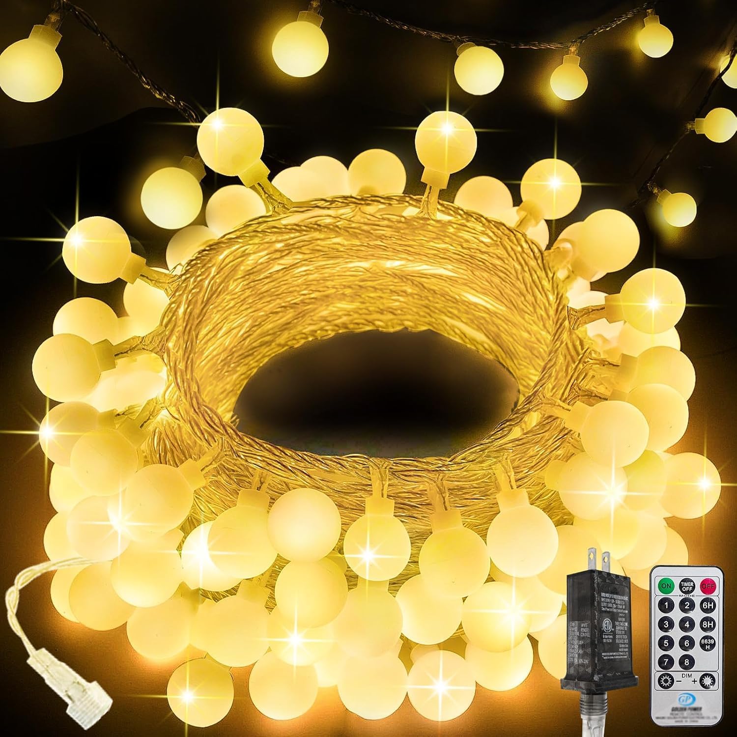 - Remote Control & Timer & Memory: These indoor string lights come with a wireless remote, You can easily turn the lights on and off, select from 8 light modes, adjust 4 brightness levels, and set a timer to keep the lights on for 6 hours and off for 18 hours. The globe lights for bedroom will memorize your last setting with the built-in memory chip.