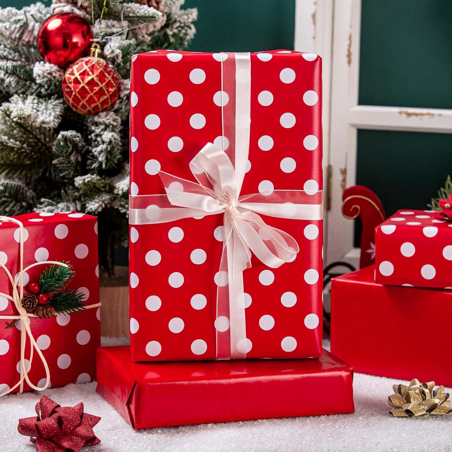 - Double-Sided Wrapping Paper: One side has red and white polka dots, and the other is solid pink, making your gift wrap both fun and elegant