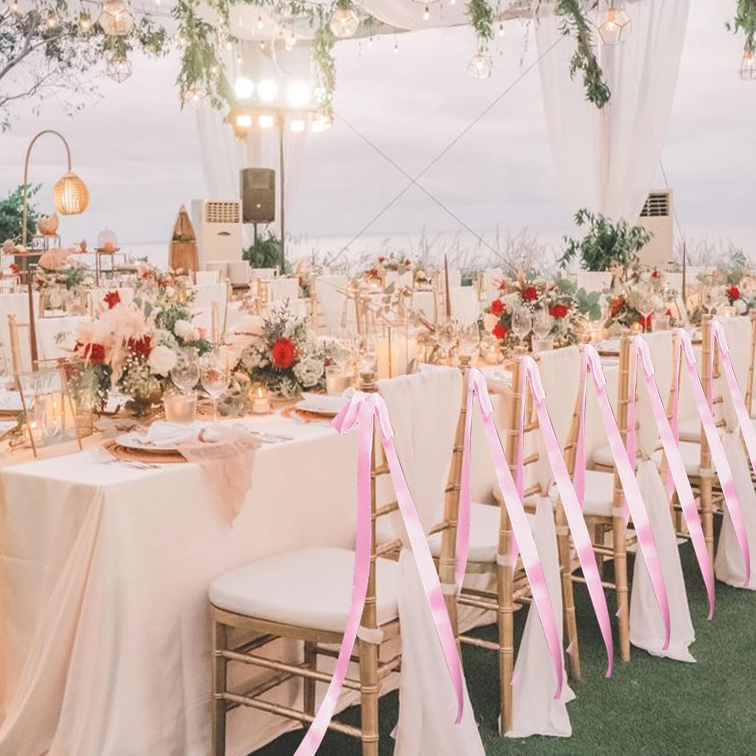 24 Pcs Large Wedding Pink Ribbon Bows for Wedding Chairs Decorative Ribbon Sashes for Pew Back Elegant Ceremony Ribbons for Bridal Shower Banquet Marriage Ceremony