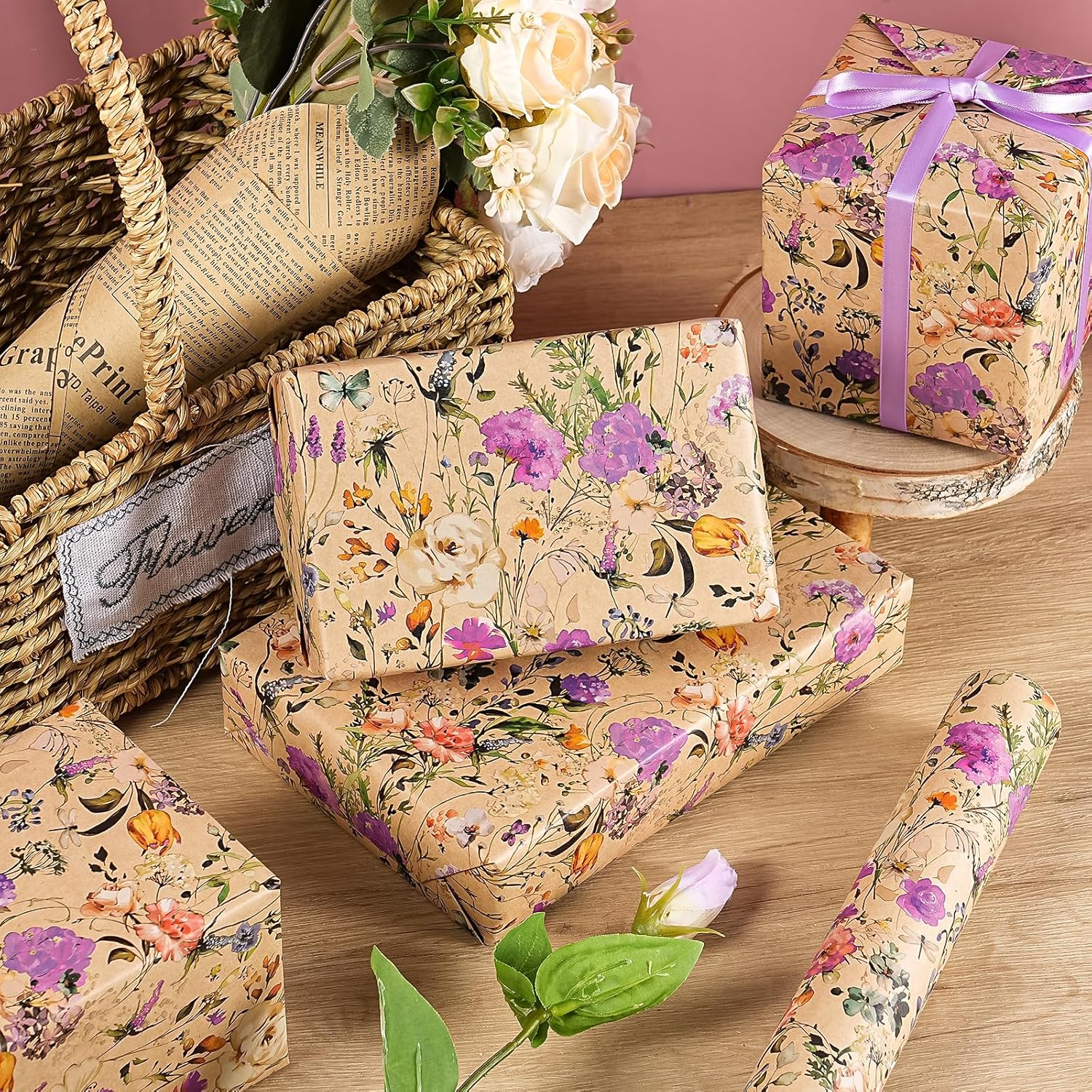 - Kraft Floral Design: Kraft garden wildflower design, will make your gift exudes charm and elegance. The flower wrapping paper make it ideal for creating a wonderful gift presentation that leaves a lasting impression.